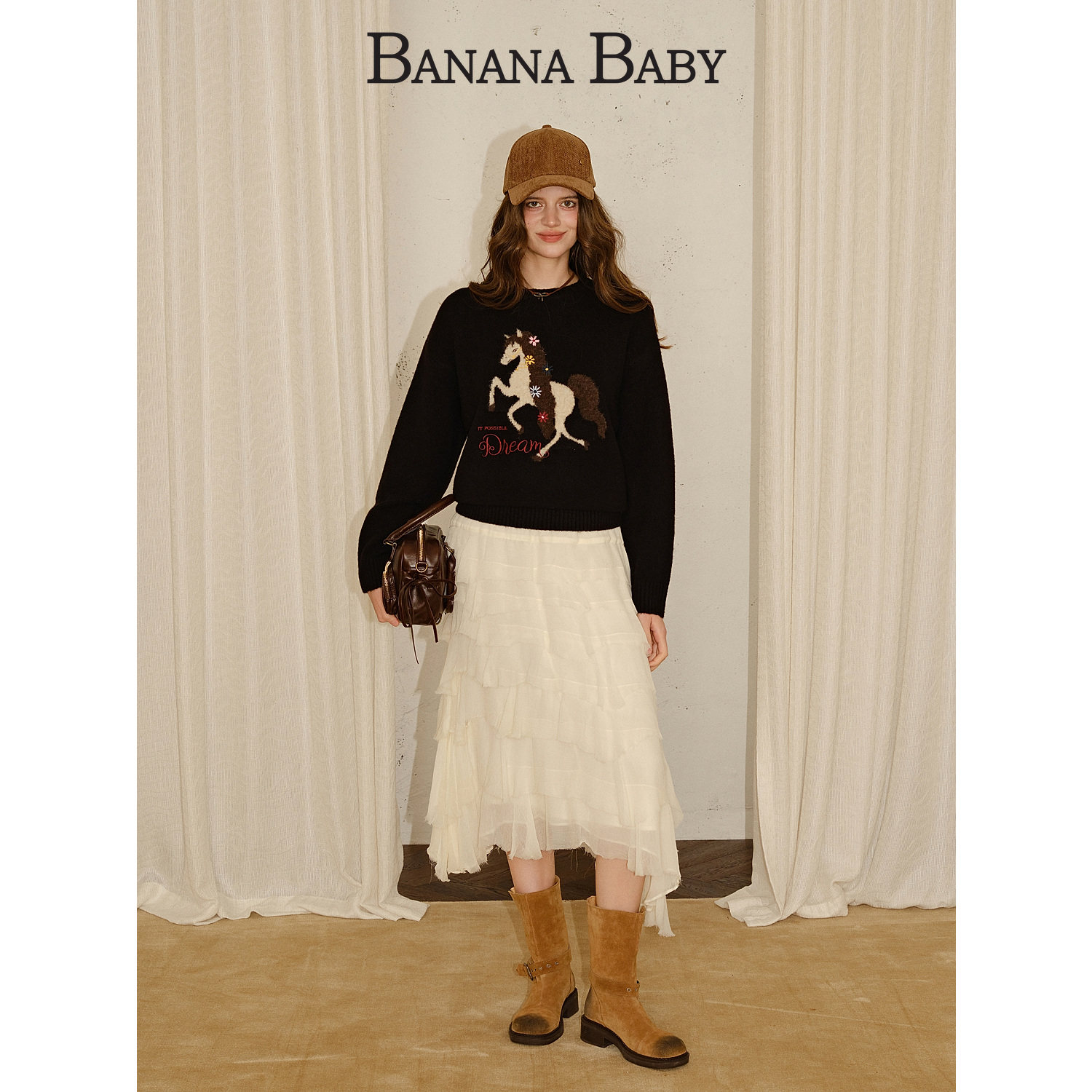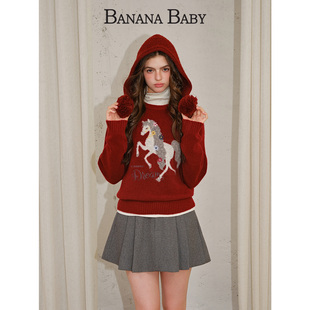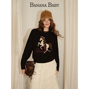原创提花毛衫 BABY2025年冬新款 BANANA 女软糯套头上衣 绵羊毛