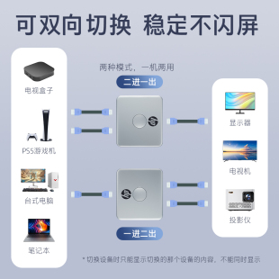惠普HDMI分屏器一分二分配器二进一出4K超高清线切换器电脑电视信号源多屏幕视频双向转换一拖二画面拓展器
