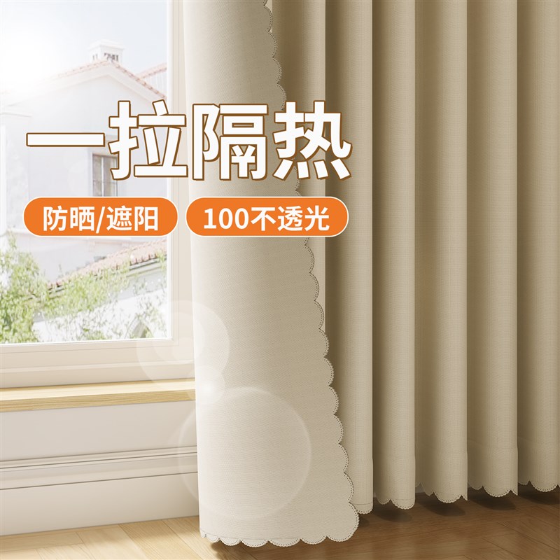 窗帘全遮光布2025新款 成品 卧室阳台遮挡阳帘子隔热防晒免打孔安装