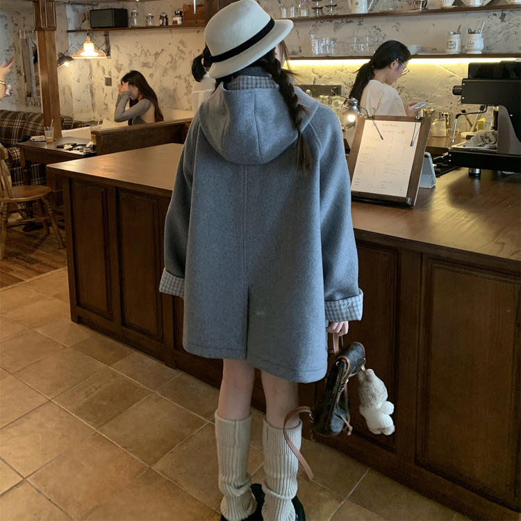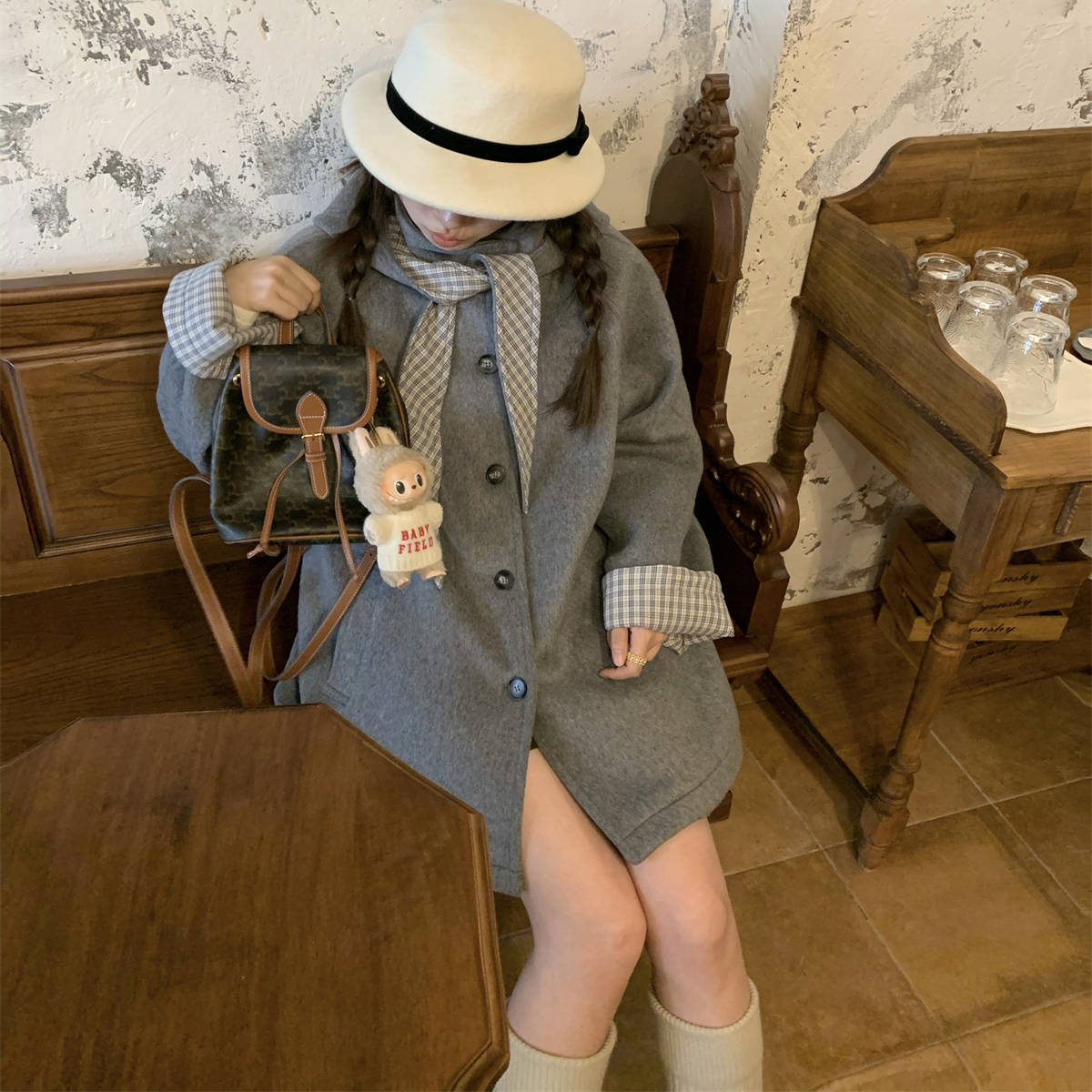 毛呢外套 jk原创日系学院风正肩牛角扣大衣加厚中长款 阿车家 大码