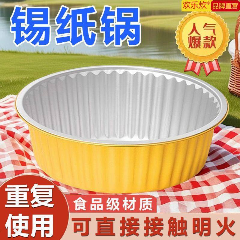 户外锡纸火锅一次性锅锅具露营卡式 炉专用野餐烧烤铝箔锅餐具烤炉