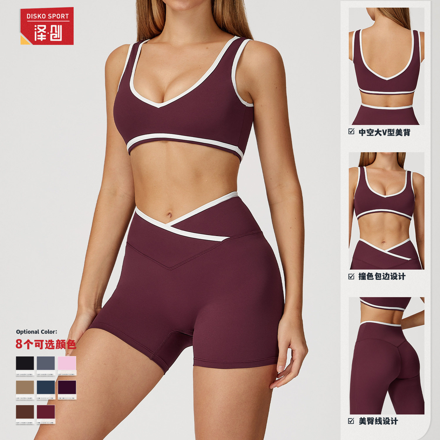 交叉高腰运动套装 跑步健身瑜伽服 女撞色露背紧身裸感瑜伽套装