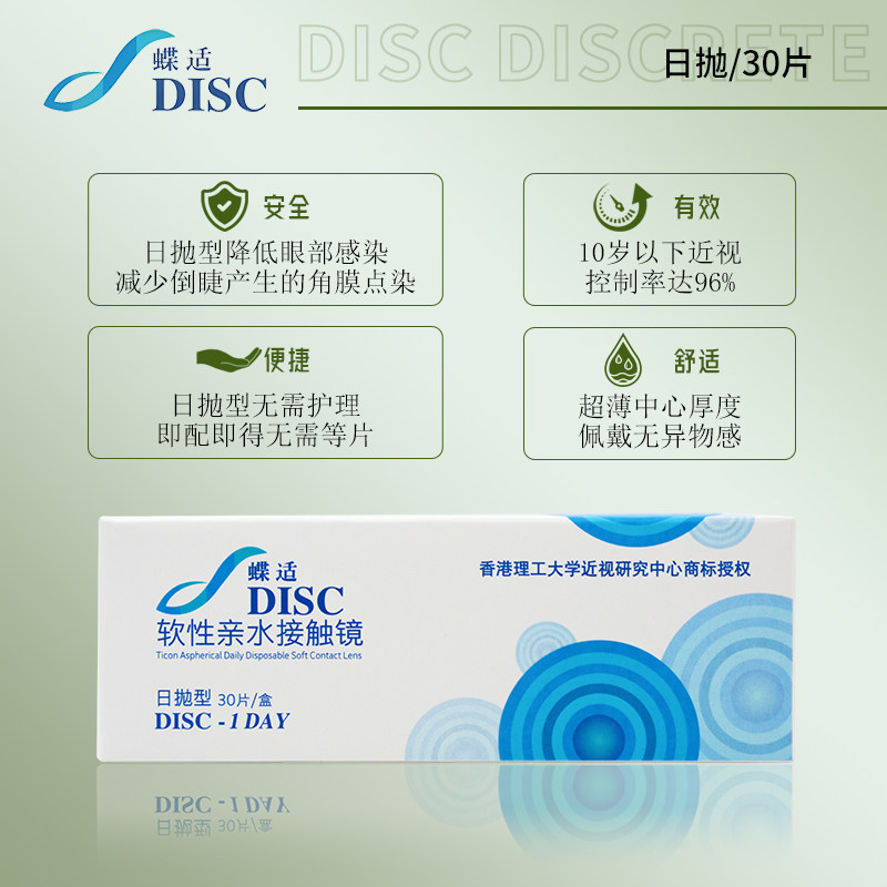 正品 蝶适离焦软镜香港理工大学儿童软镜日抛30片延缓近视角膜塑形