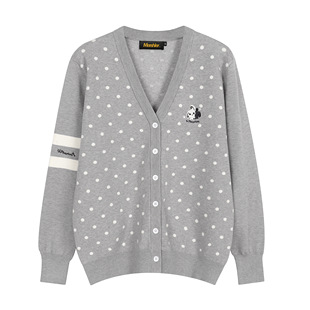 慵懒休闲上衣 V领毛衣外套女秋季 Amoeba美式 复古波点提花针织开衫