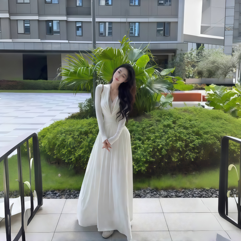 宴会蕾丝长裙 新款 instahot 纯欲深V气质约会白色连衣裙女2025秋季