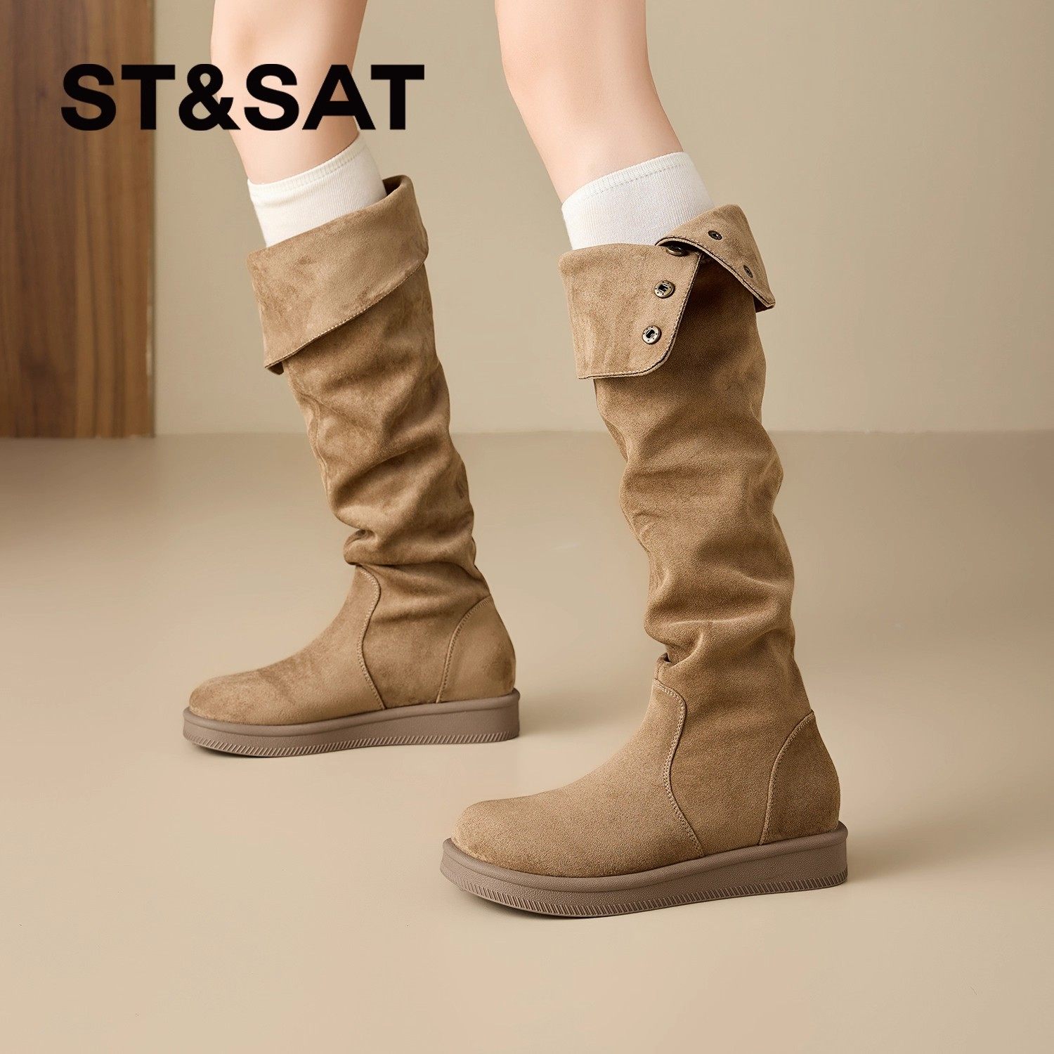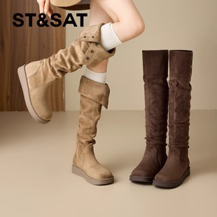 靴皮靴 时装 吴宣仪天美意千金靴复古厚底骑士靴加绒长靴女鞋 子新款