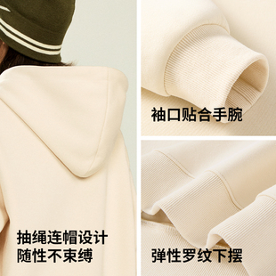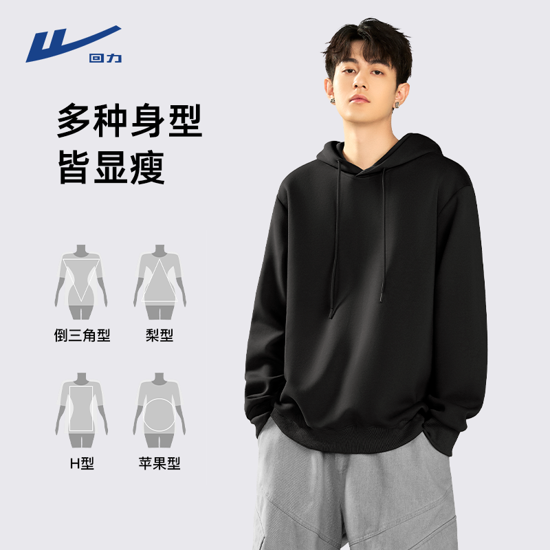 回力套头卫衣男冬季 白色重磅简约学生加绒加厚连帽外套Y 2025新款
