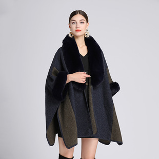 新款 欧洲站狐狸毛围脖斗篷双面羊毛呢子大衣外套女中长款 25冬季