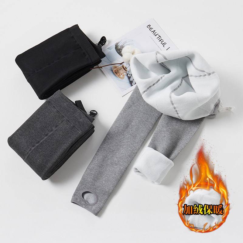 条纹羊绒加绒显瘦一体连袜踩脚不勒肚200斤 冬季 大码 孕妇打底袜裤