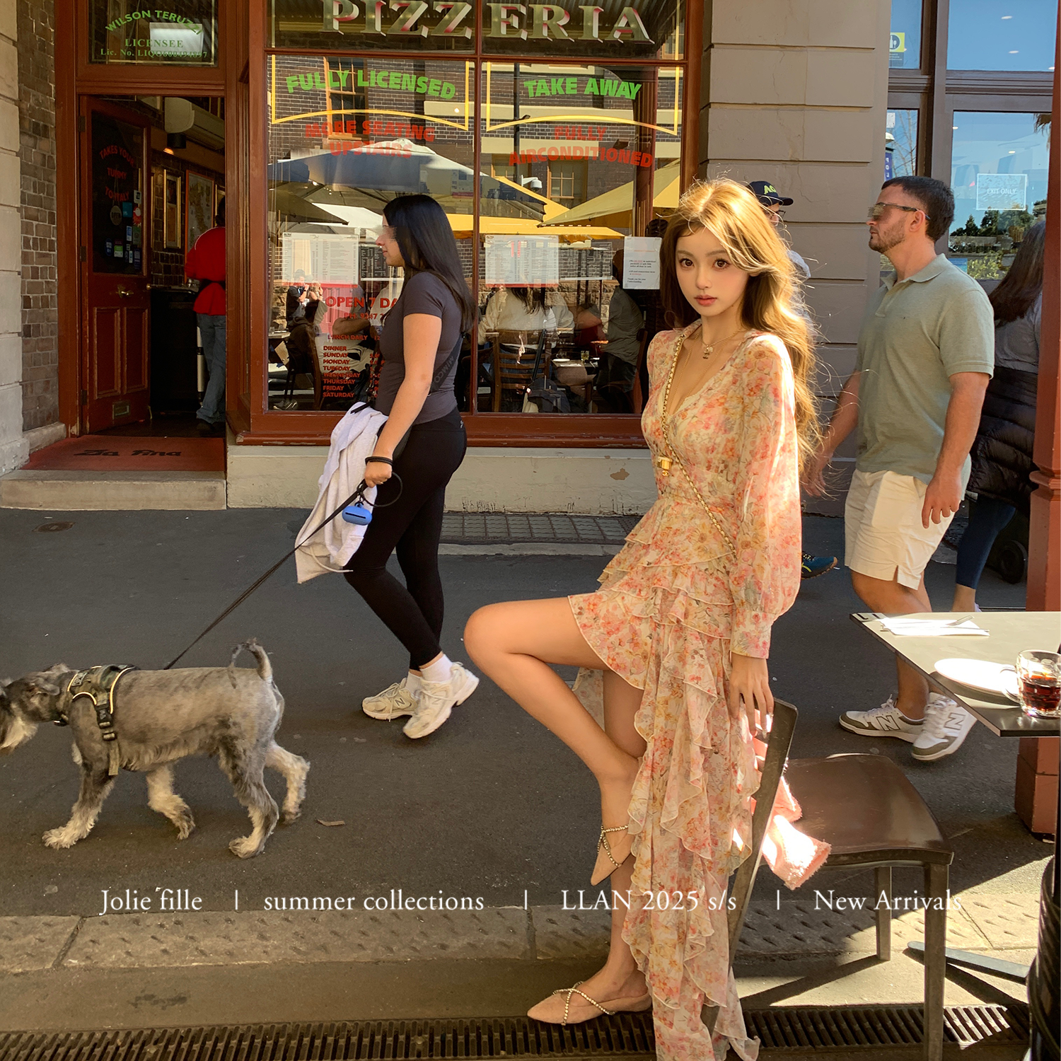 显腿长性感V领不规则大裙摆蕾丝连衣裙 花洛爱神 你 懒懒llan
