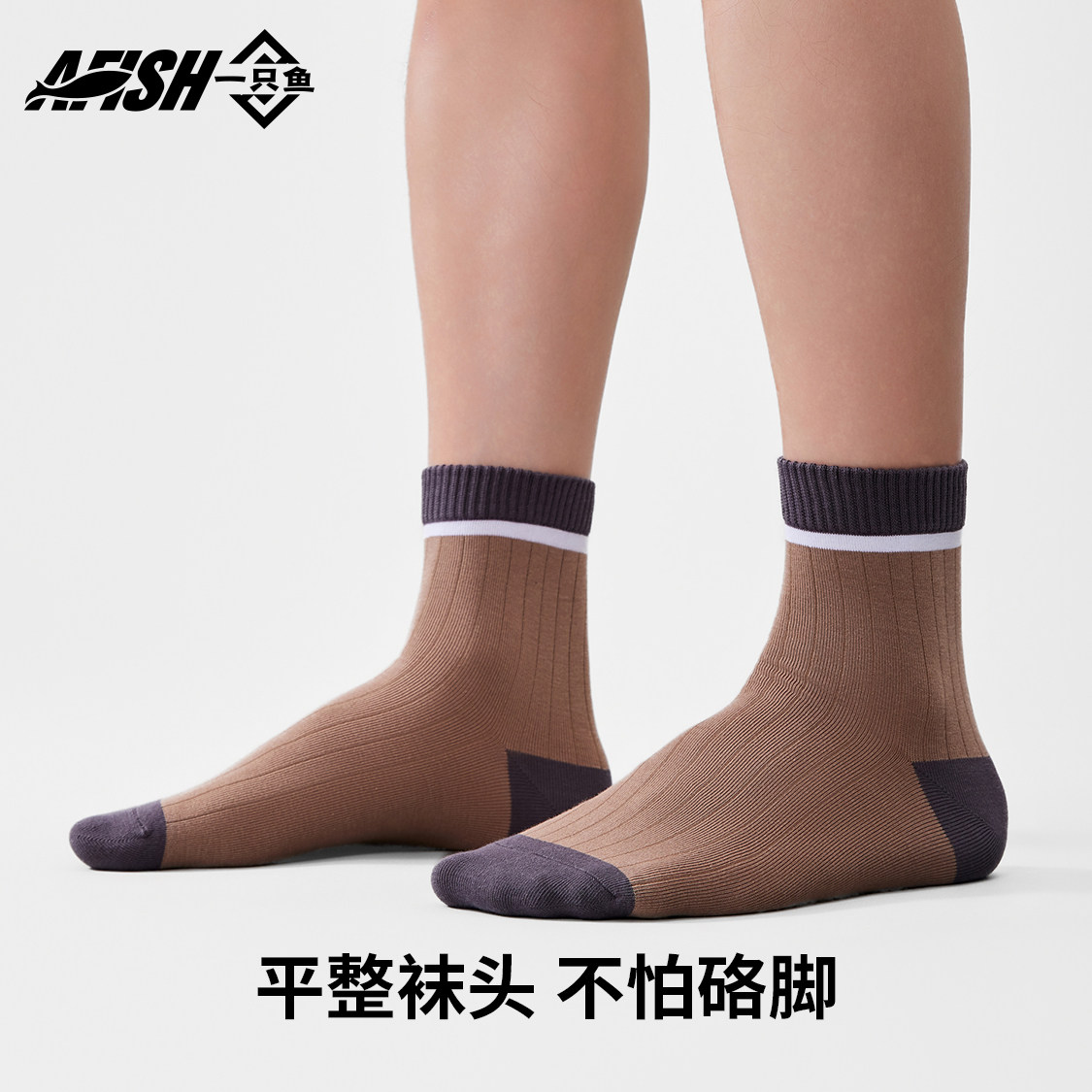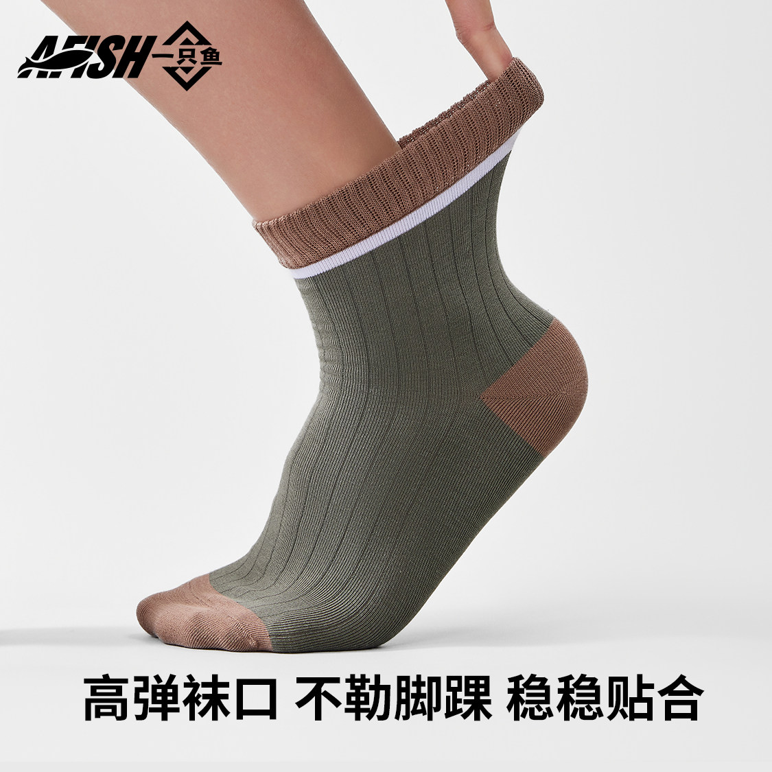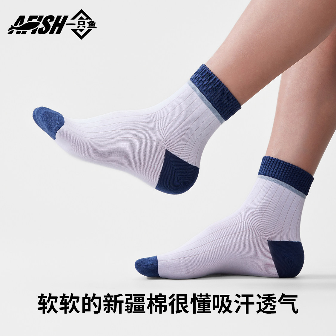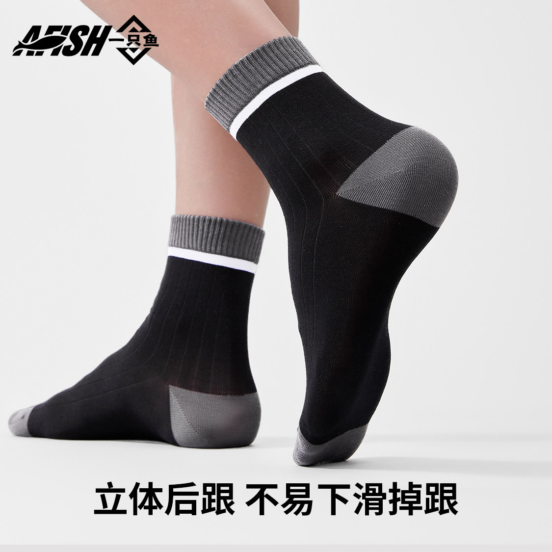 一只鱼袜子男款 中筒袜棉袜抗菌防臭防脚气吸汗透气运动长袜 春秋季