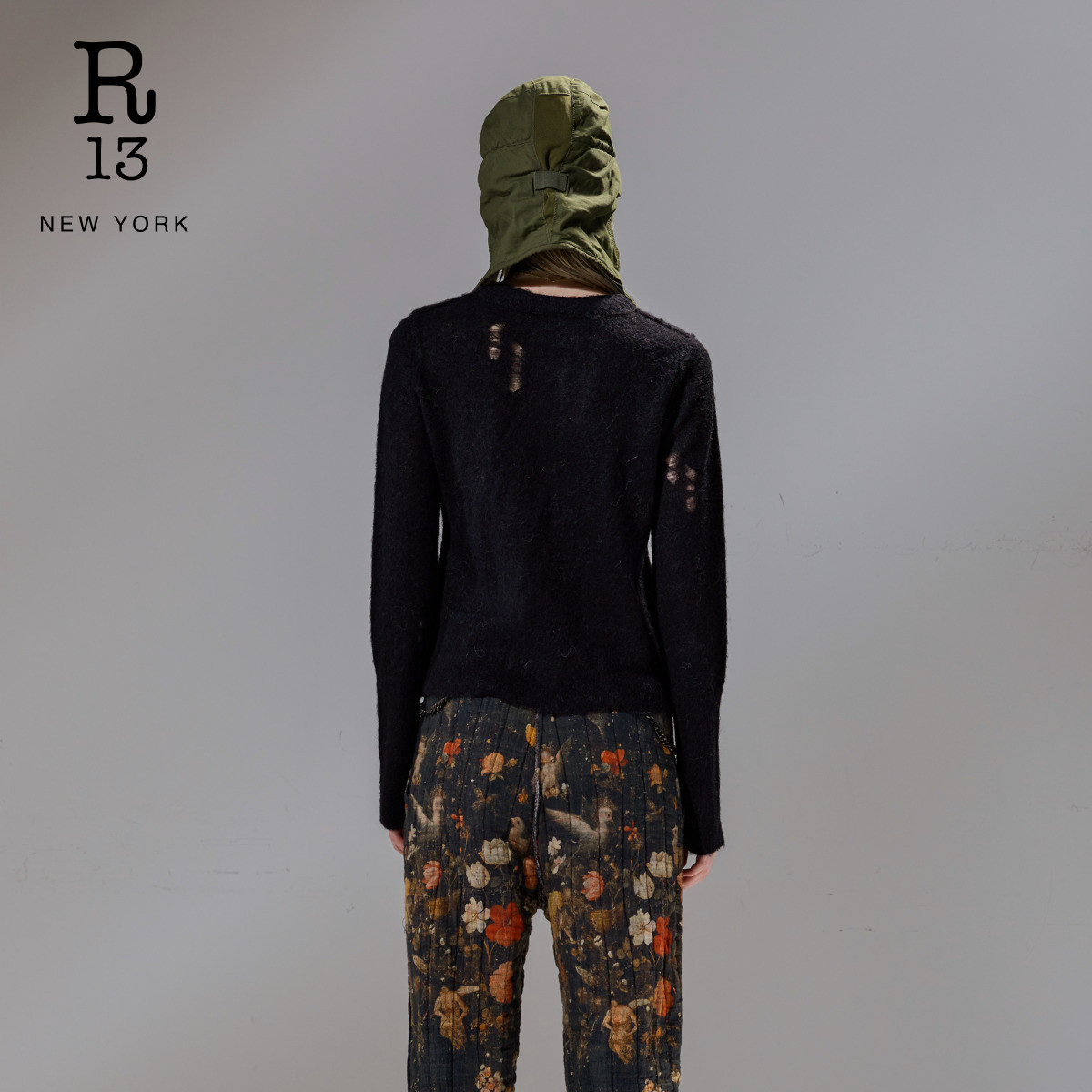R13 末甄选 明星同款 破洞做旧圆领修身 毛衣 针织开衫 季
