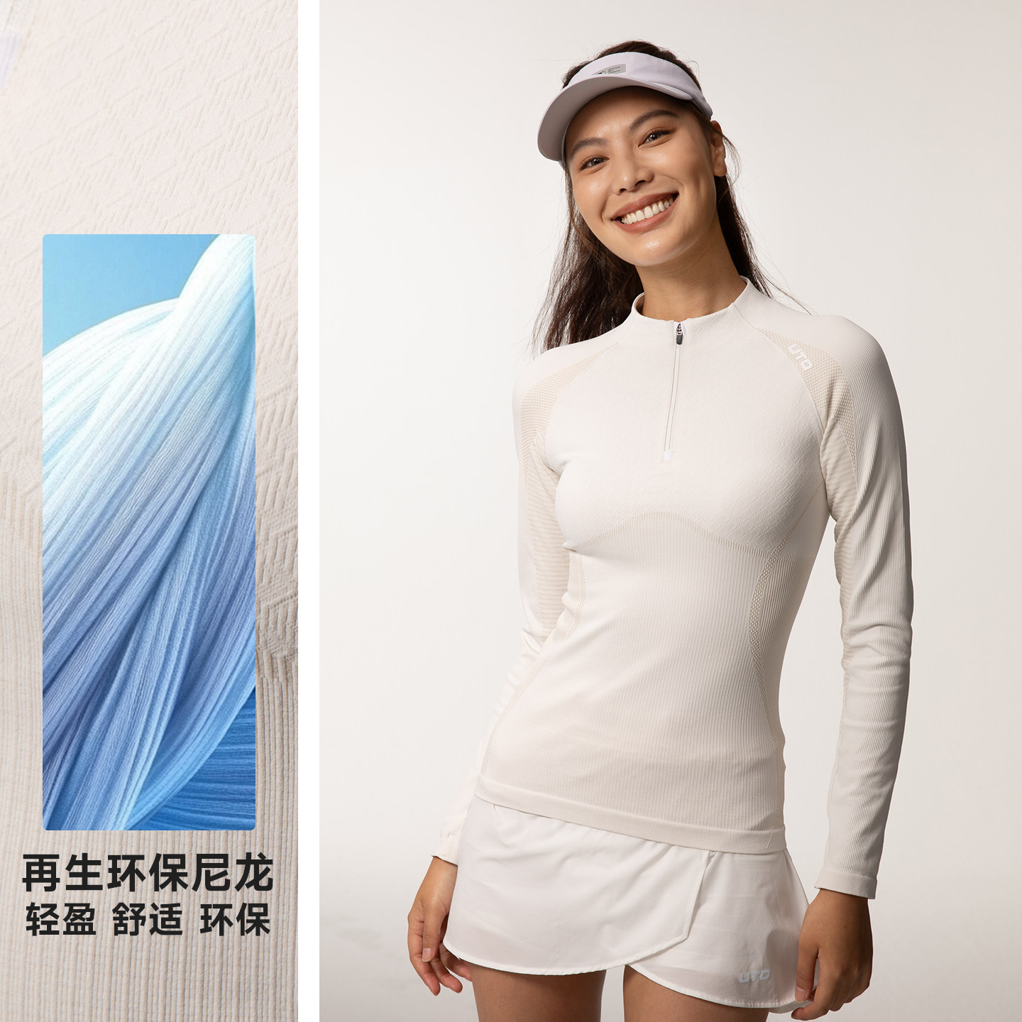 UTO悠途女士运动半拉链长袖 户外跑步徒步速干T恤排汗透气 春秋季