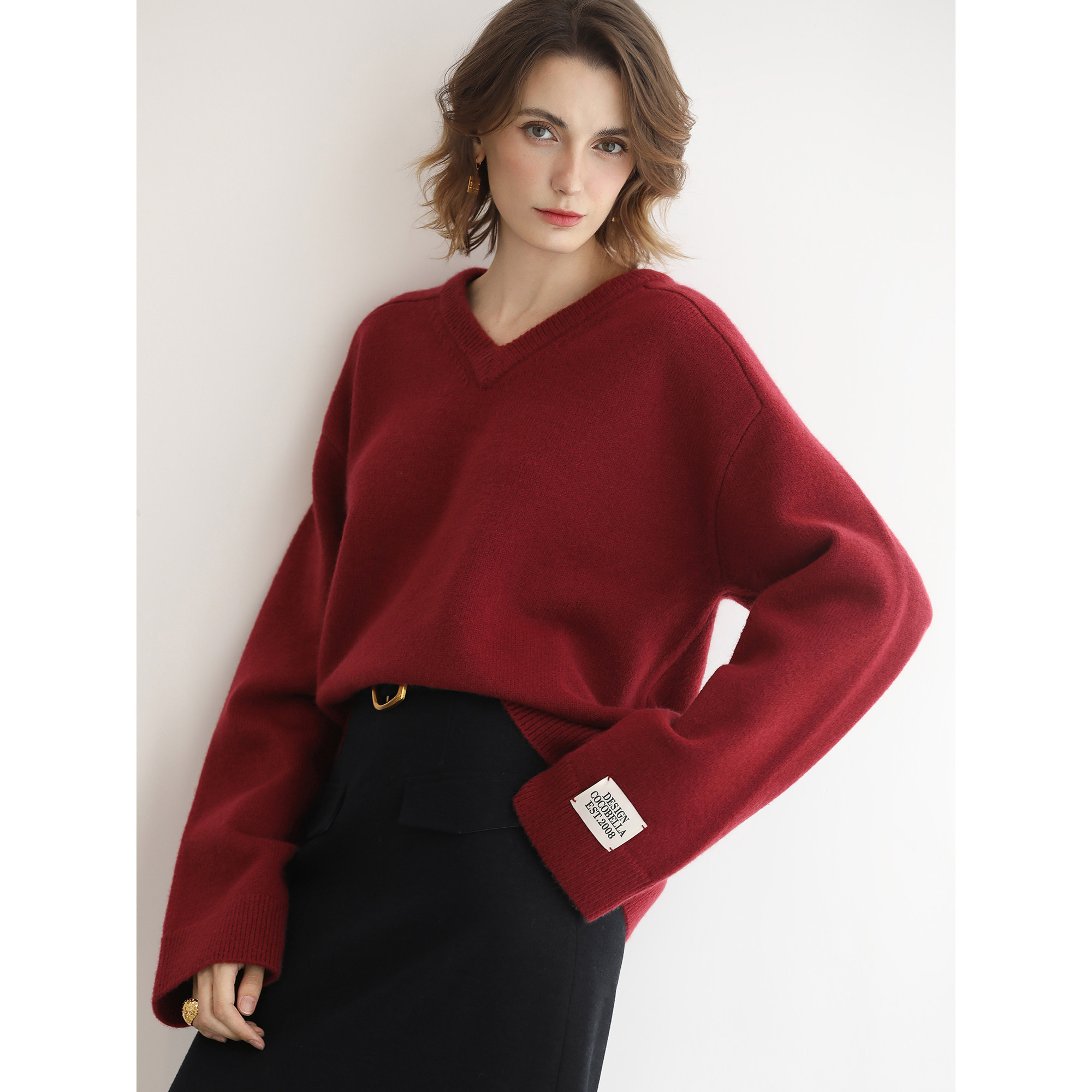 上衣 甜美风红色毛衣女秋冬新年圣诞穿搭针织衫 织物猪 斗篷小狗