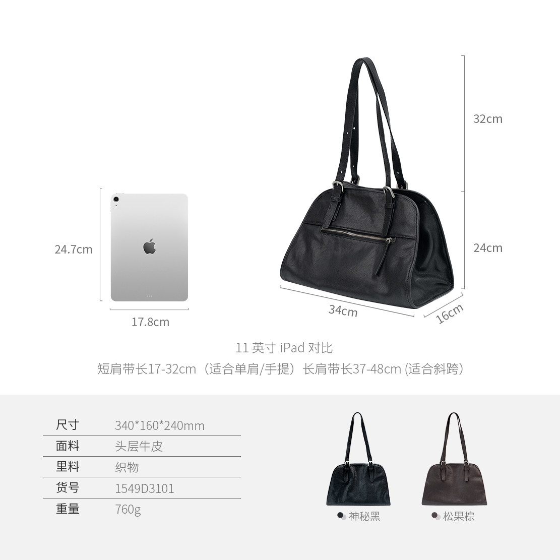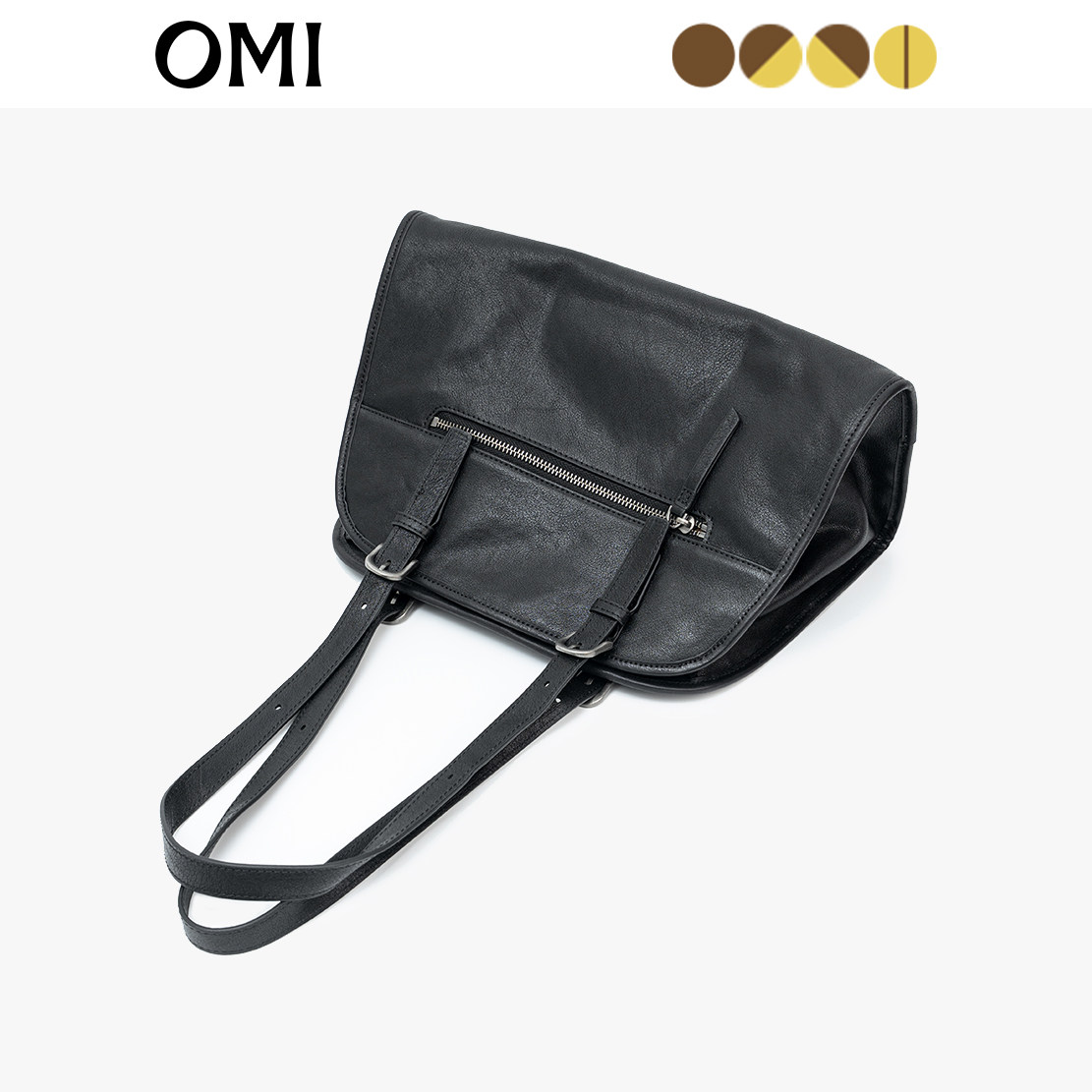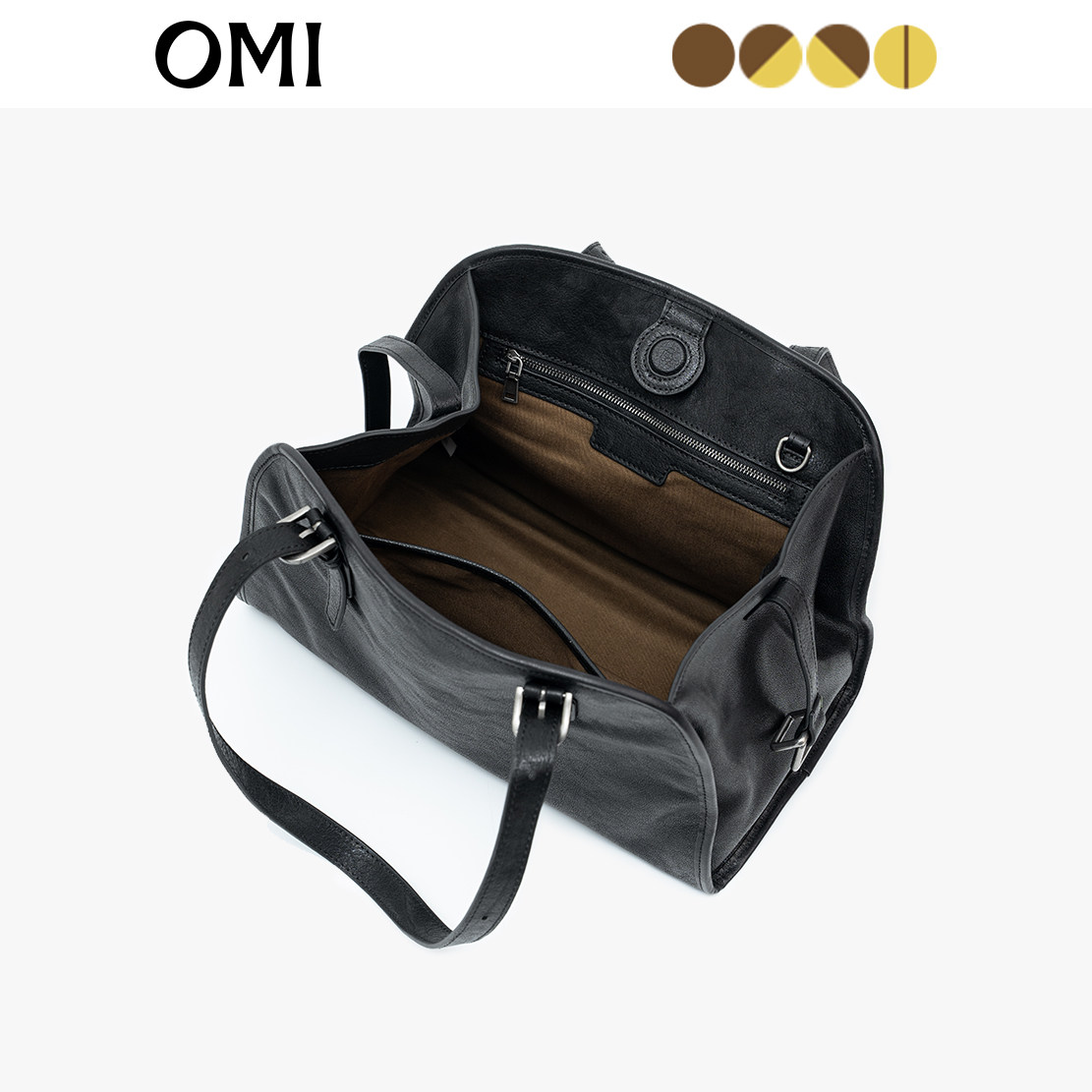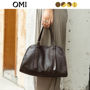 欧米OMI 植鞣胎牛皮敞口保龄球斜挎包轻奢牛皮包大号简约文艺风