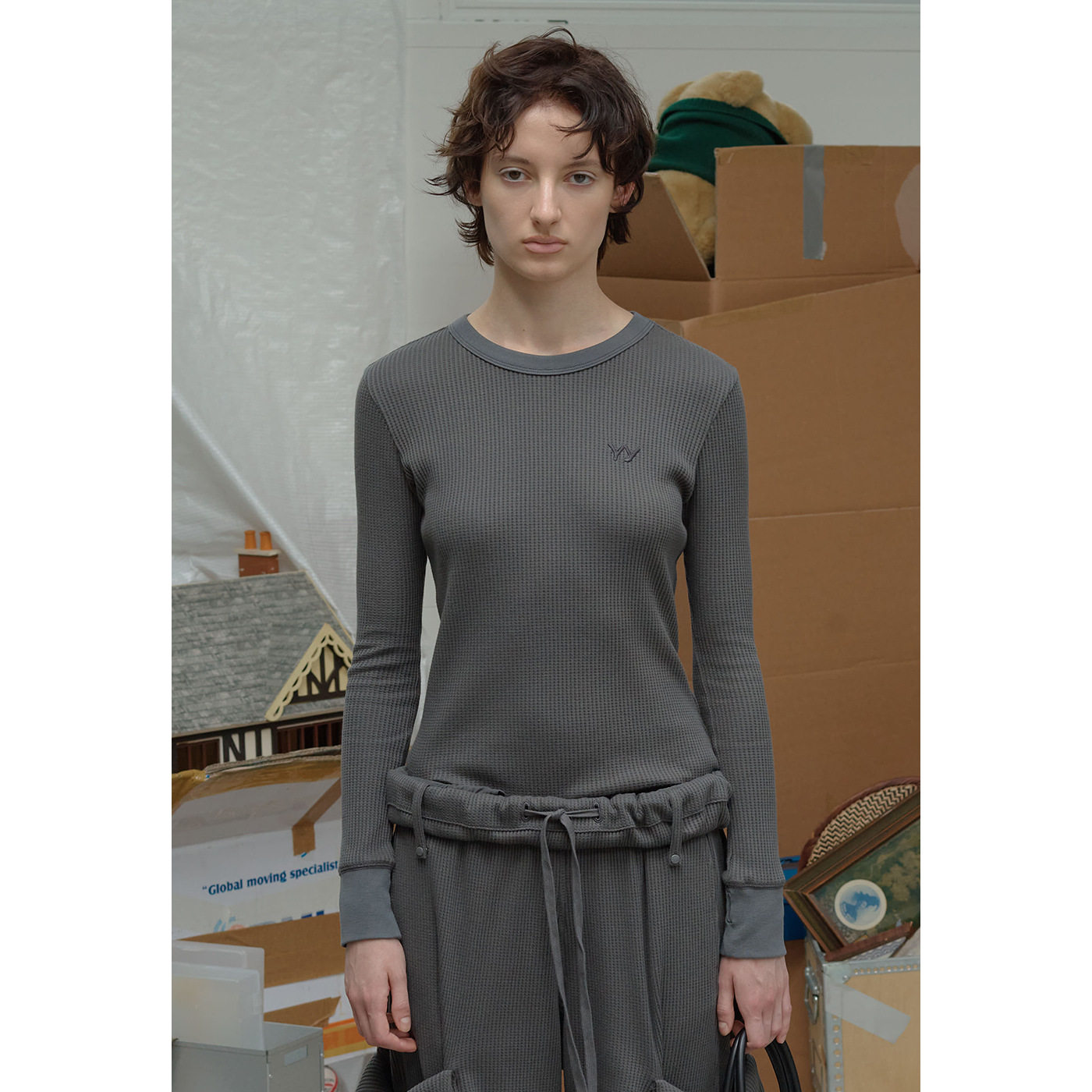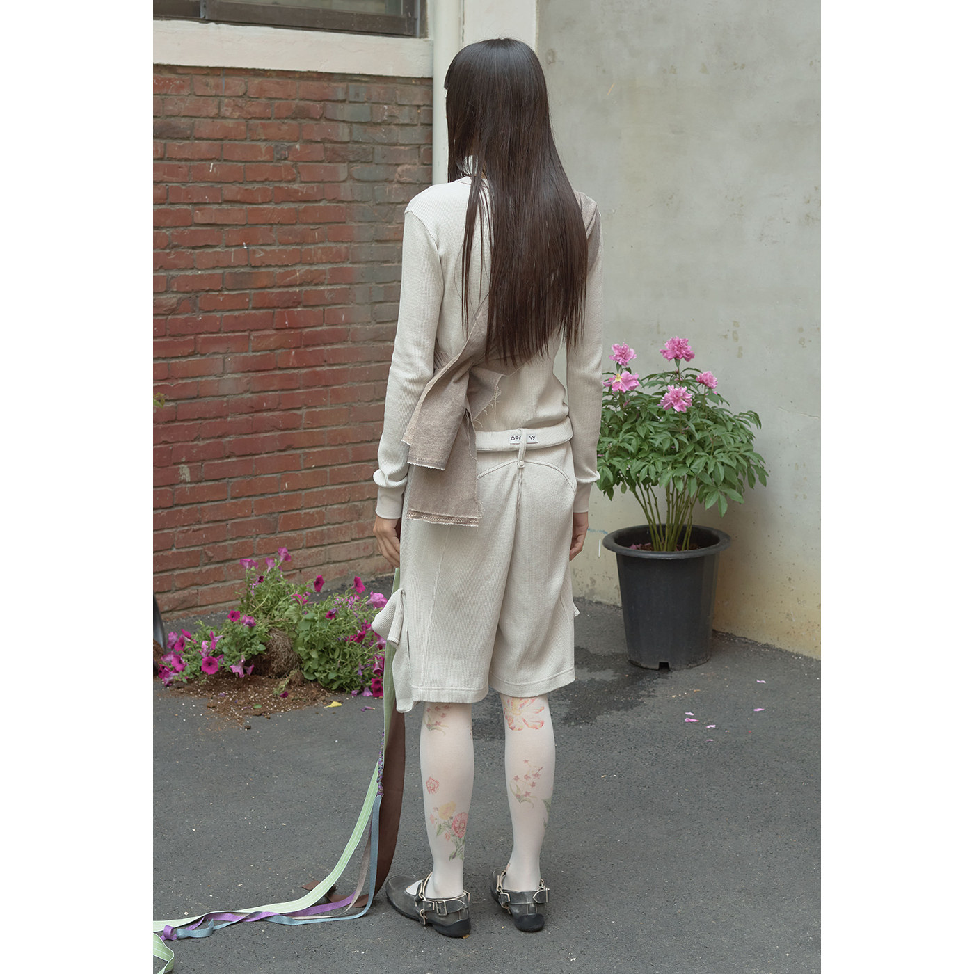 华夫格长袖 26春新品 T恤卷腰边工装 短裤 OPEN 韩国代购