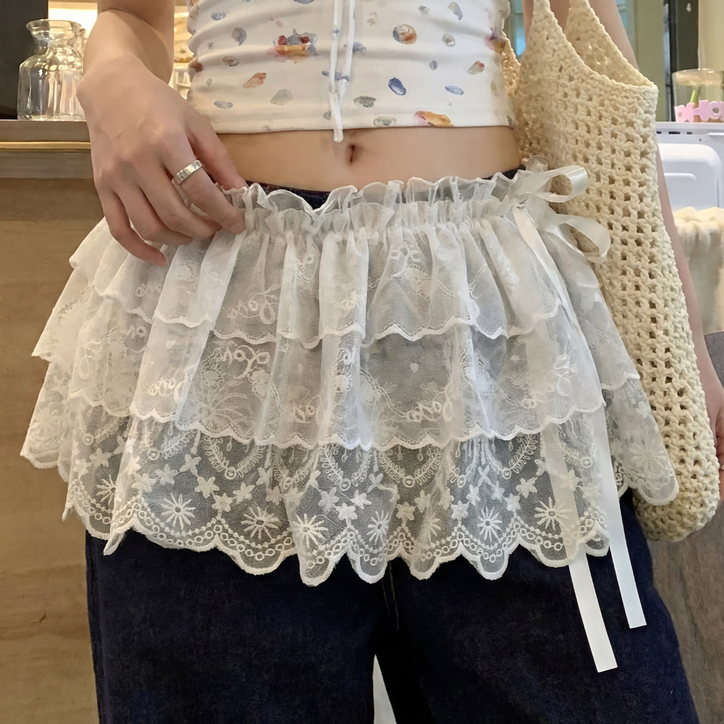 韩国气质白色蕾丝花边屁帘女高级感ins风牛仔裤 叠穿半身裙蛋糕裙