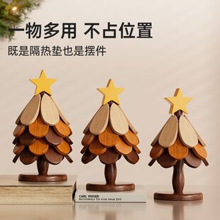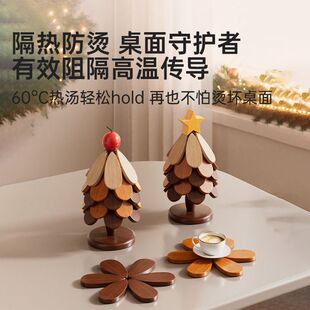 圣诞树隔热垫餐桌高级感摆件实木防烫锅垫折叠杯垫碗垫装 饰品防水