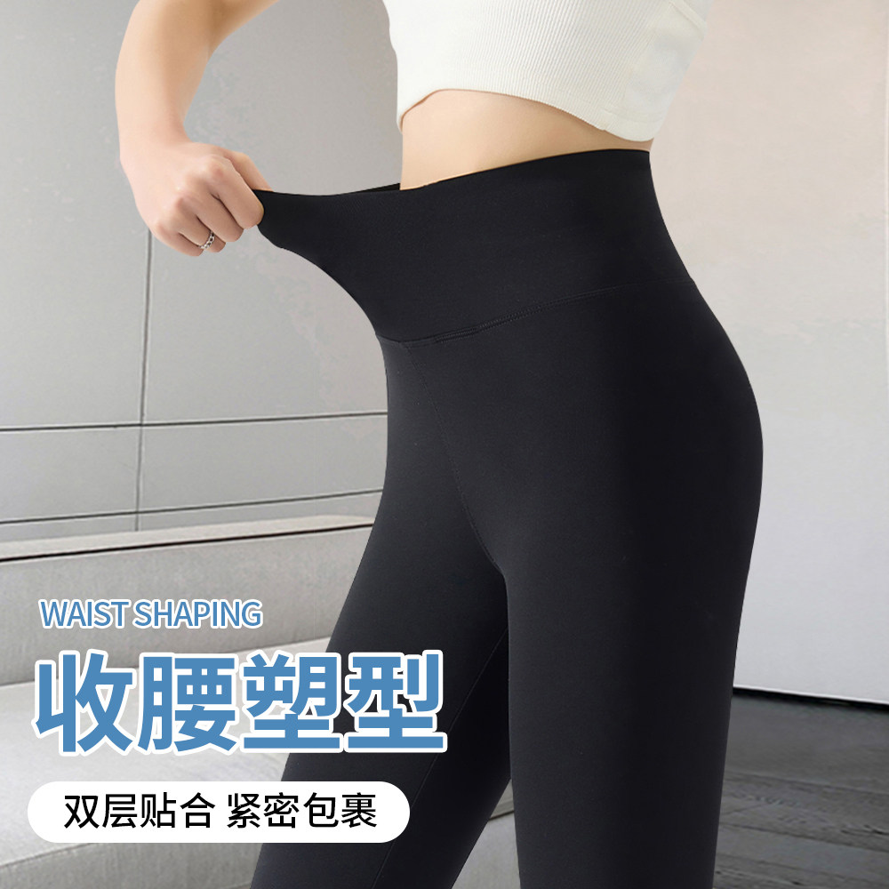 高腰收腹马蹄打底裤 瑜伽喇叭裤 女外穿2026春秋新款 黑色微喇鲨鱼裤