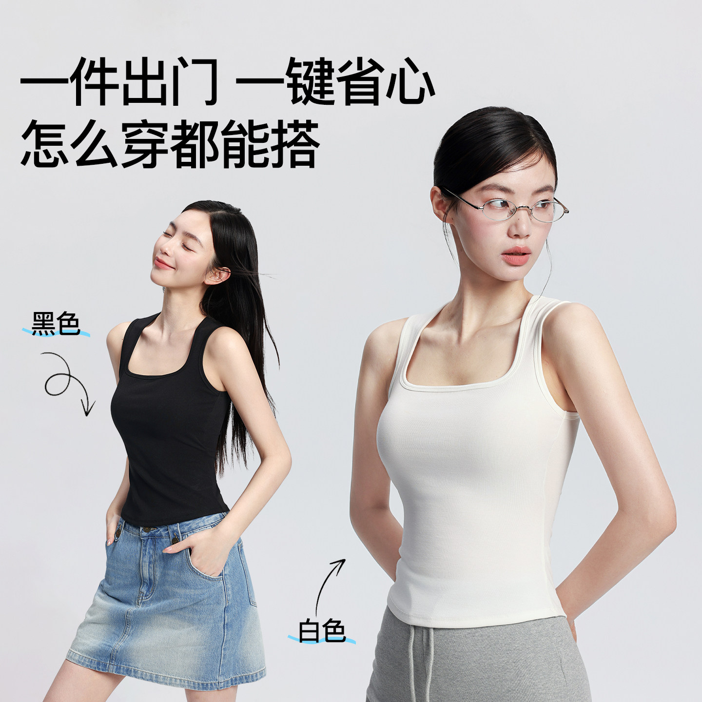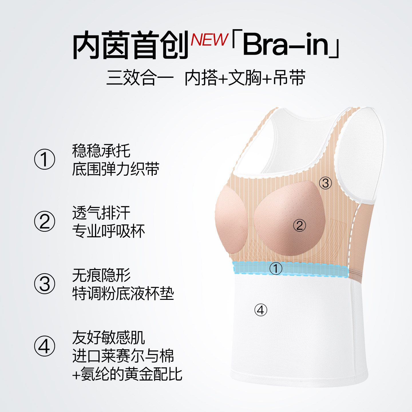 内茵白色吊带背心女内搭带胸垫免穿文胸一体式 无痕美背显瘦打底