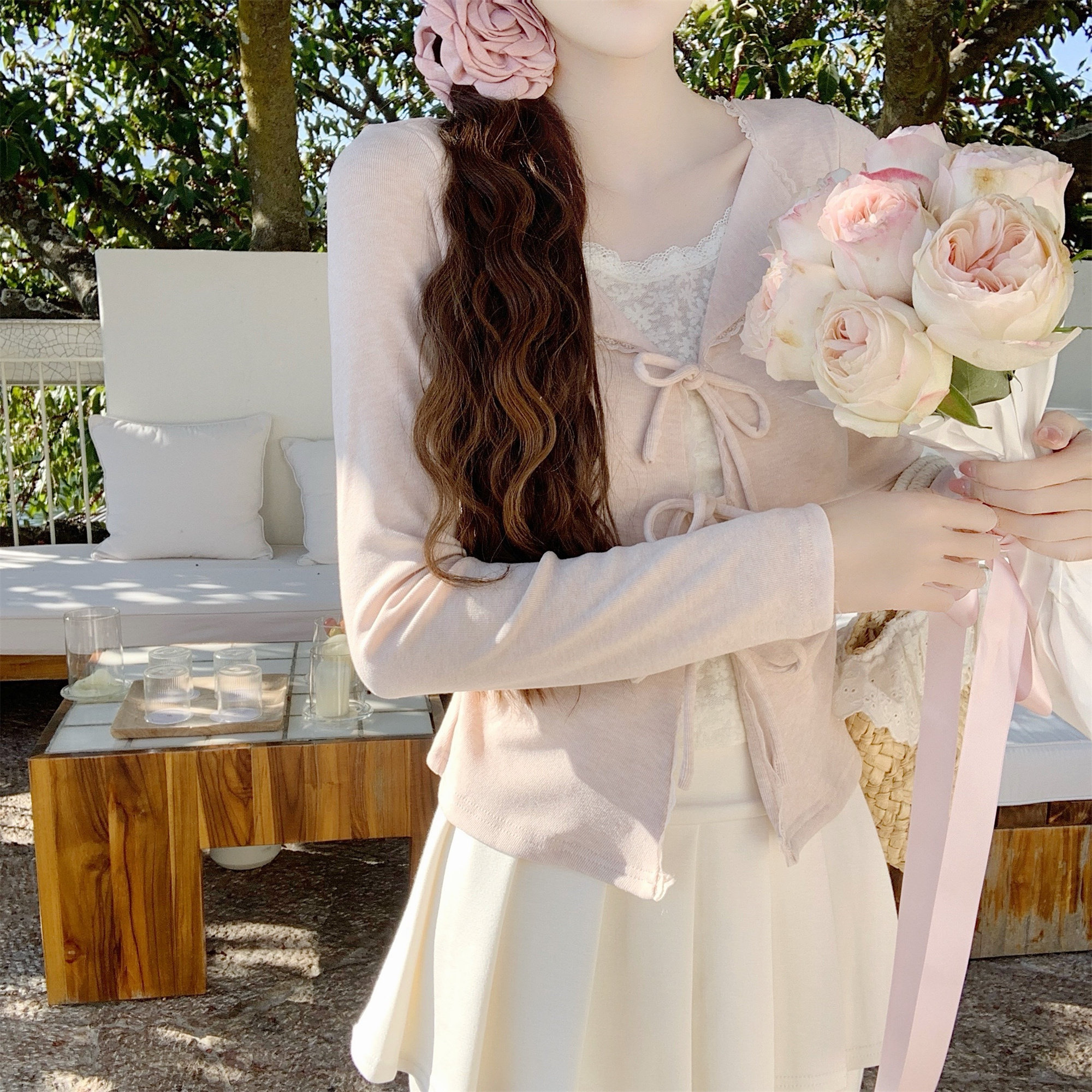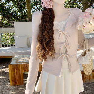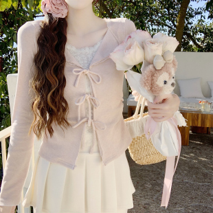 Dear 百搭长袖 温柔系带蝴蝶结假两件上衣女修身 春日絮语