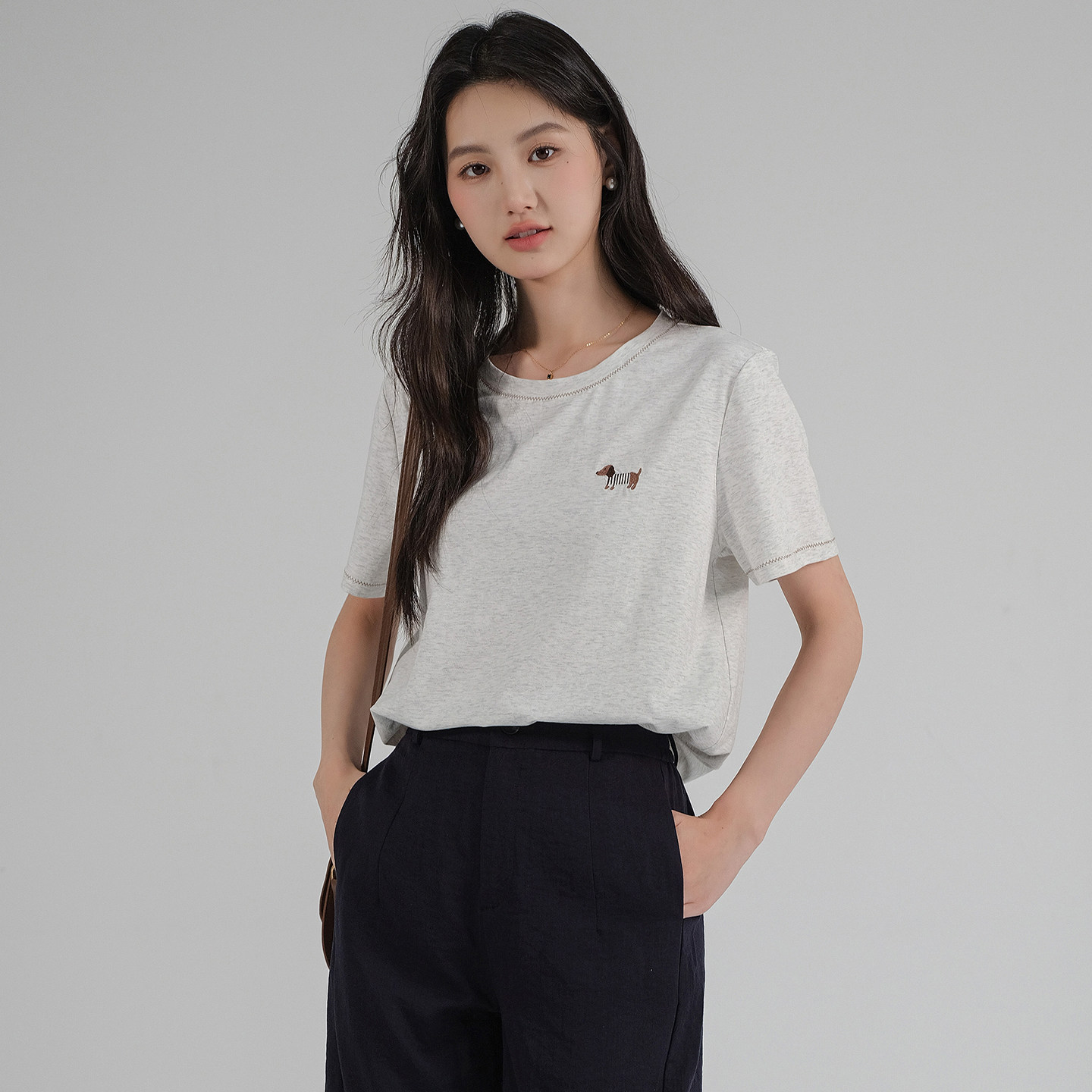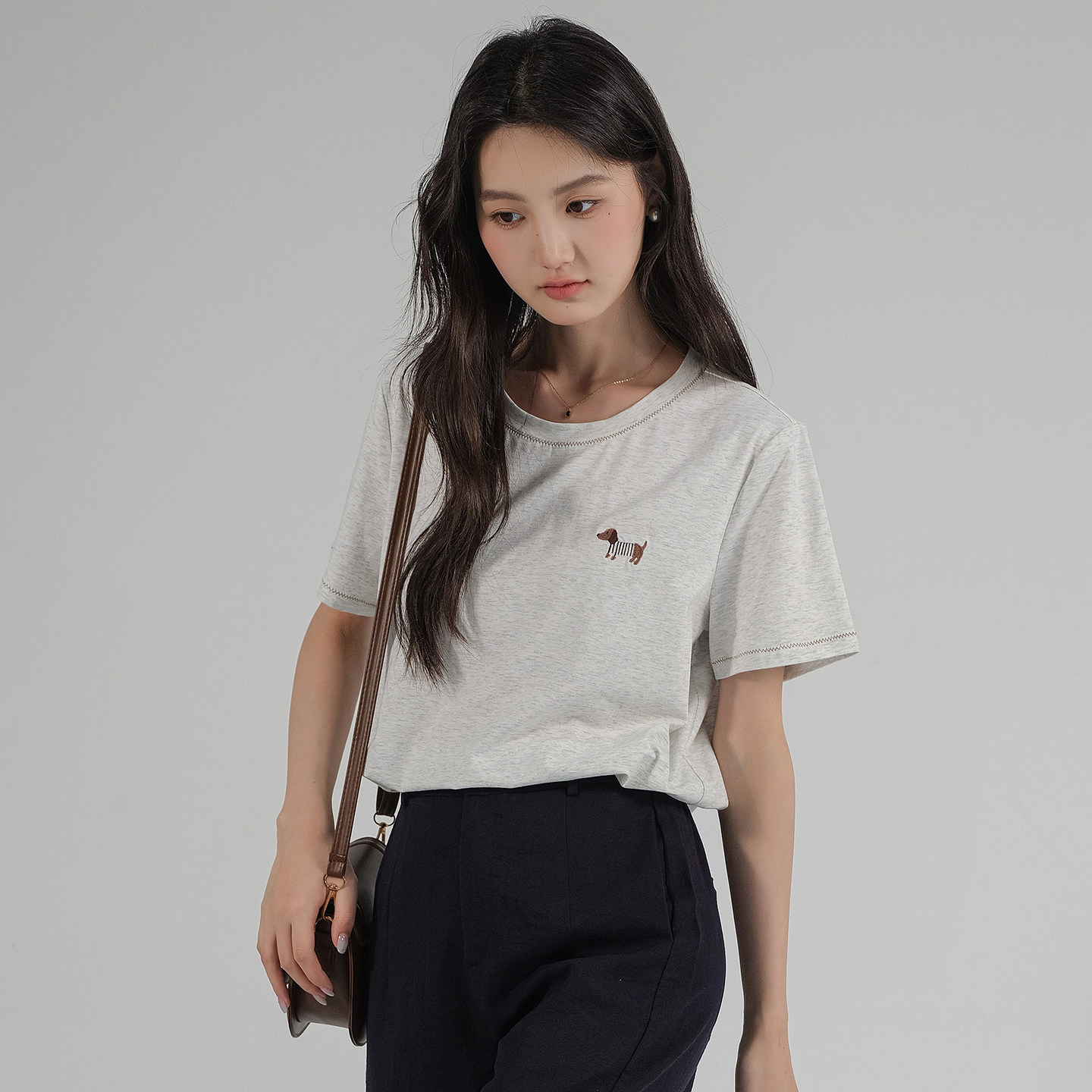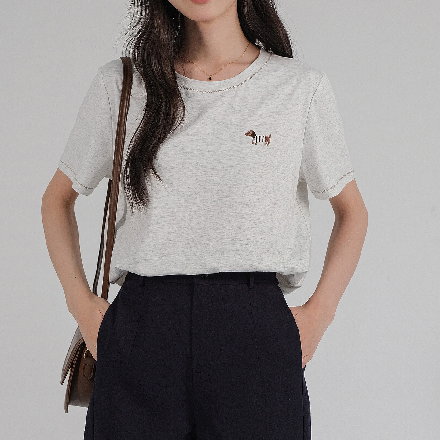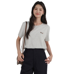 新款 2026夏装 明线刺绣冰感棉T恤胖MM休闲宽松上衣 女装 蓝若水大码