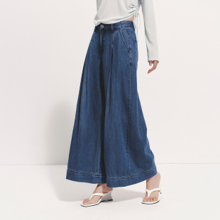 森马牛仔裤 显腿长阔腿裤 女夏凉感抑菌打褶长裤 时尚 2026新款 森柔