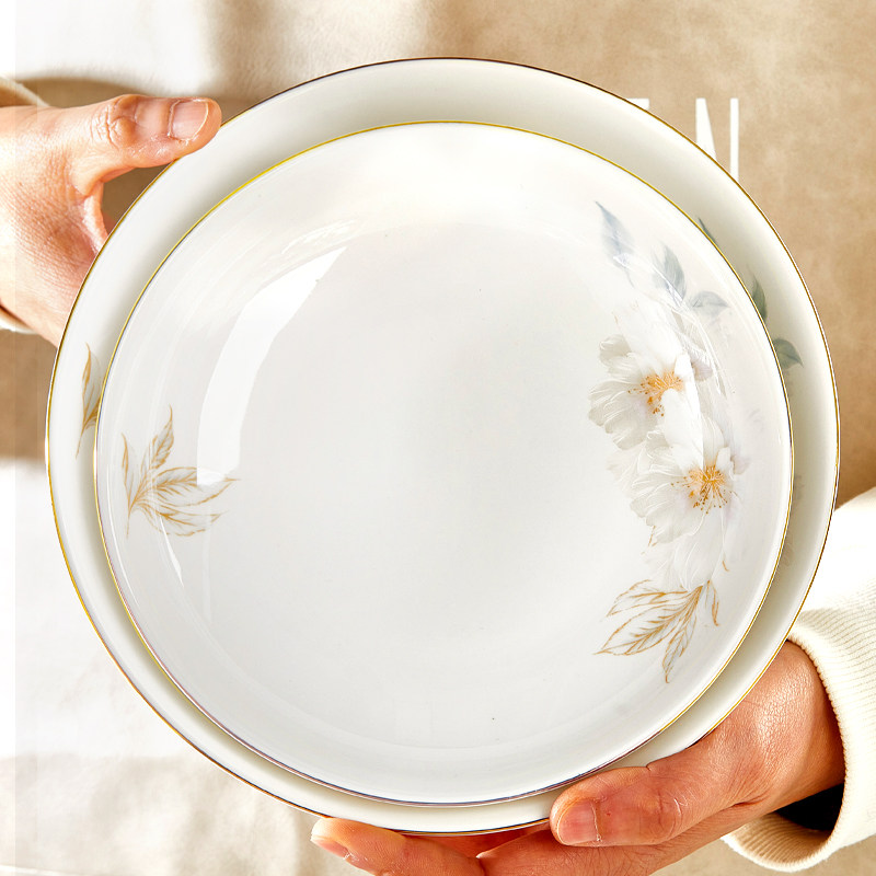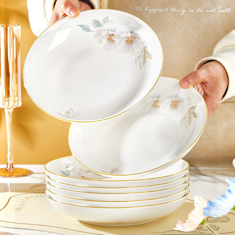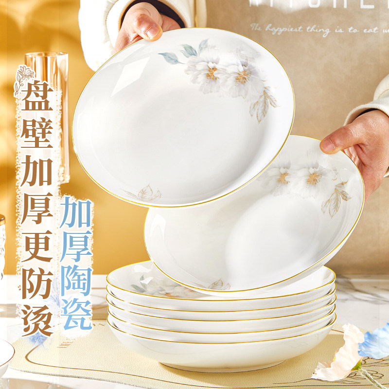 优尊陶瓷盘子菜盘家用2026新款 高颜值金边轻奢可微波碗盘碟子餐具