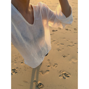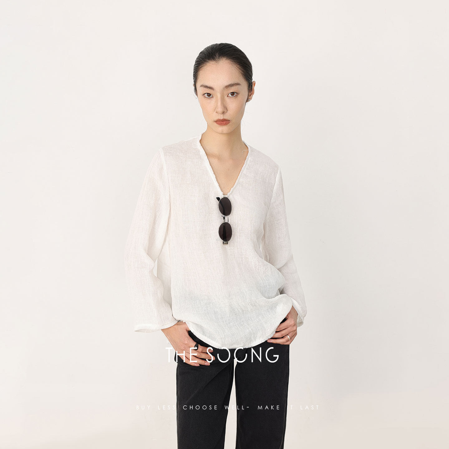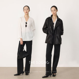 T恤HWTX8529 纯亚麻酵洗加软细腻肌理感V领长袖 THESOONG 早春新款