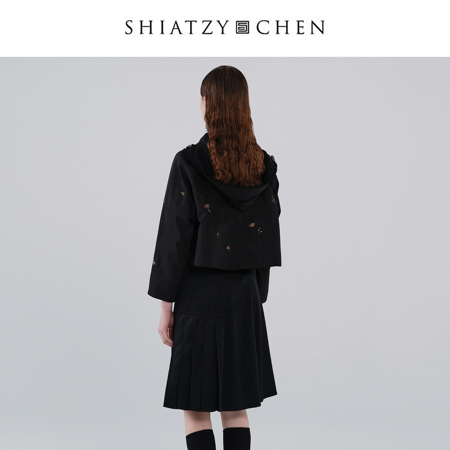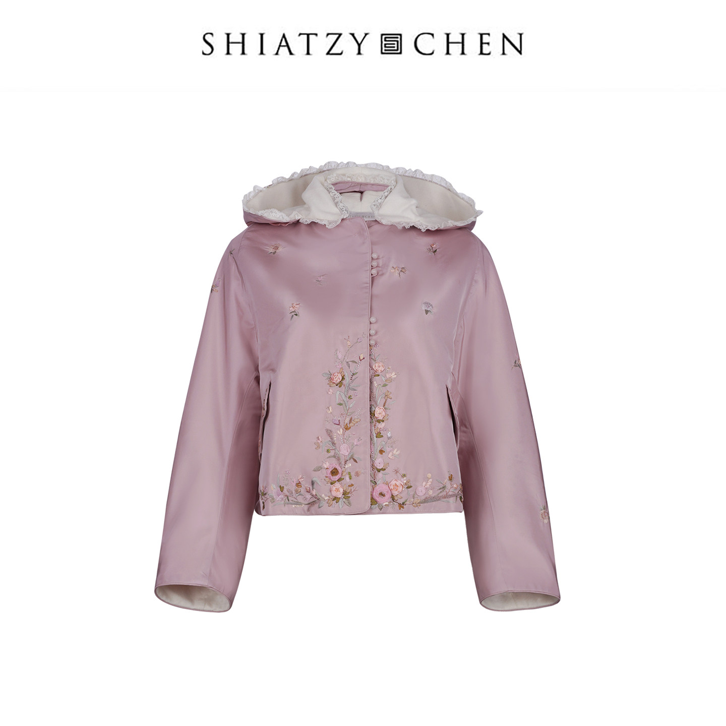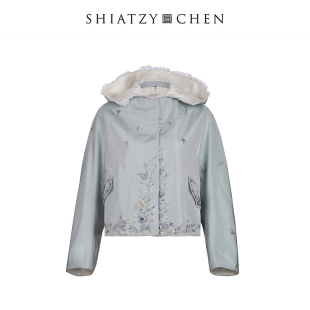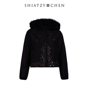 SHIATZY 夏姿·陈采帨系列丝光刺绣连帽短外套640636 CHEN