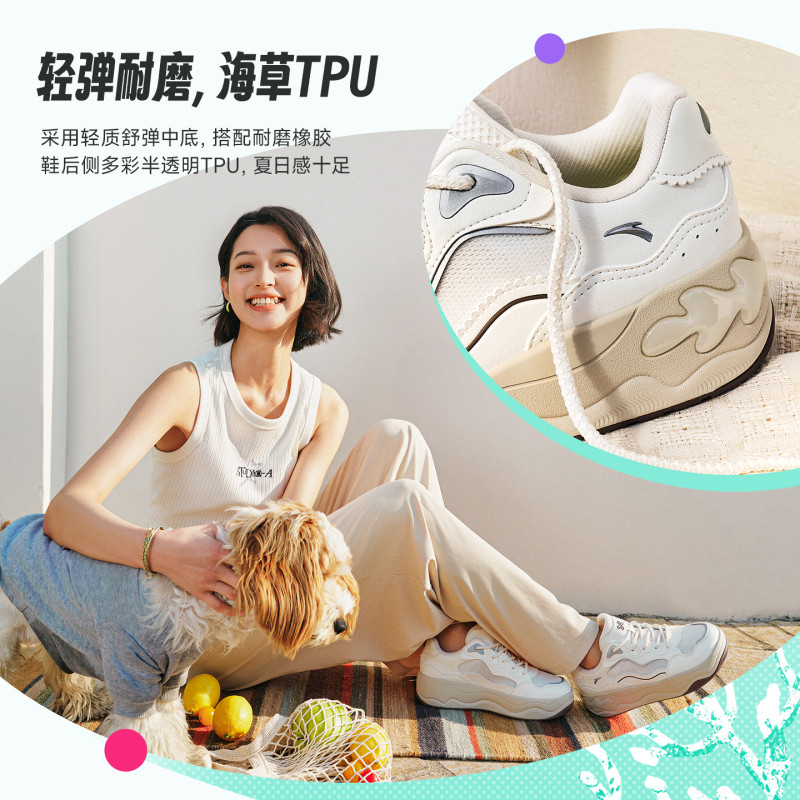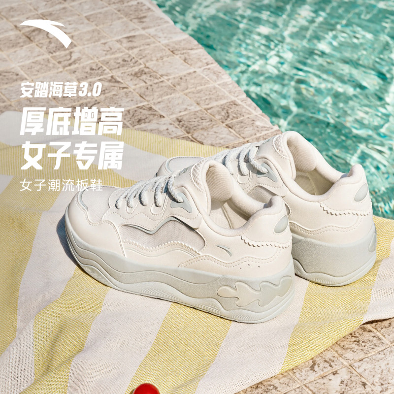 厚底增高经典 透气舒适休闲鞋 潮流板鞋 新款 女2026夏季 安踏海草3