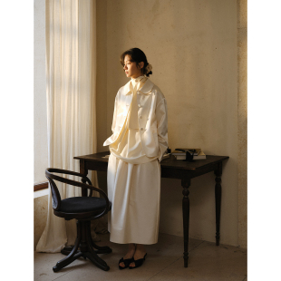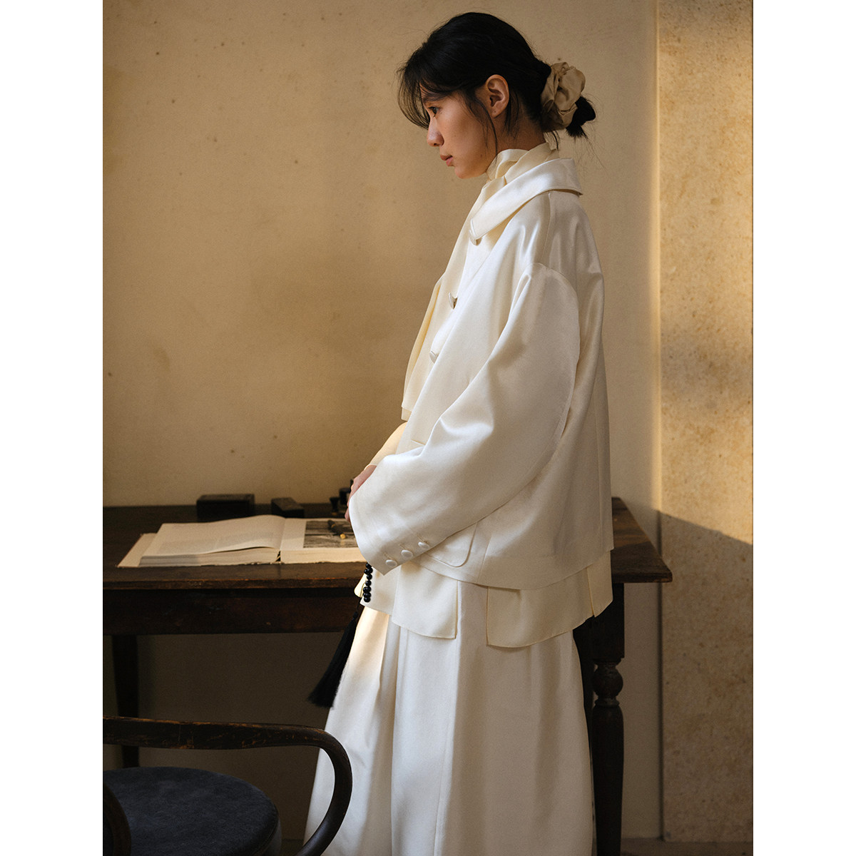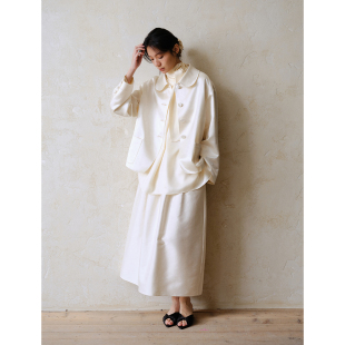 重磅真丝羊毛双面缎娃娃领短外套女春 贝雪微融 commuse memory