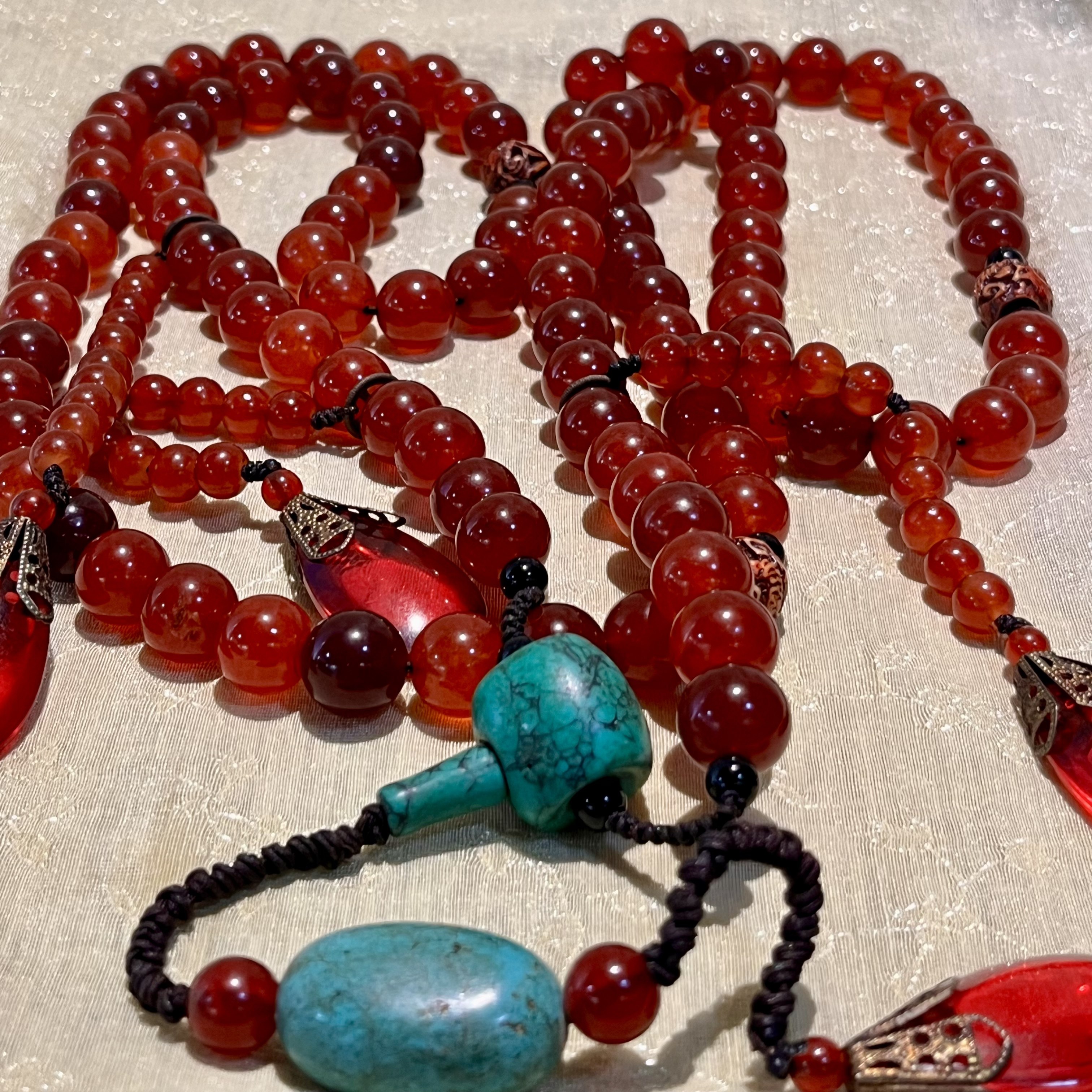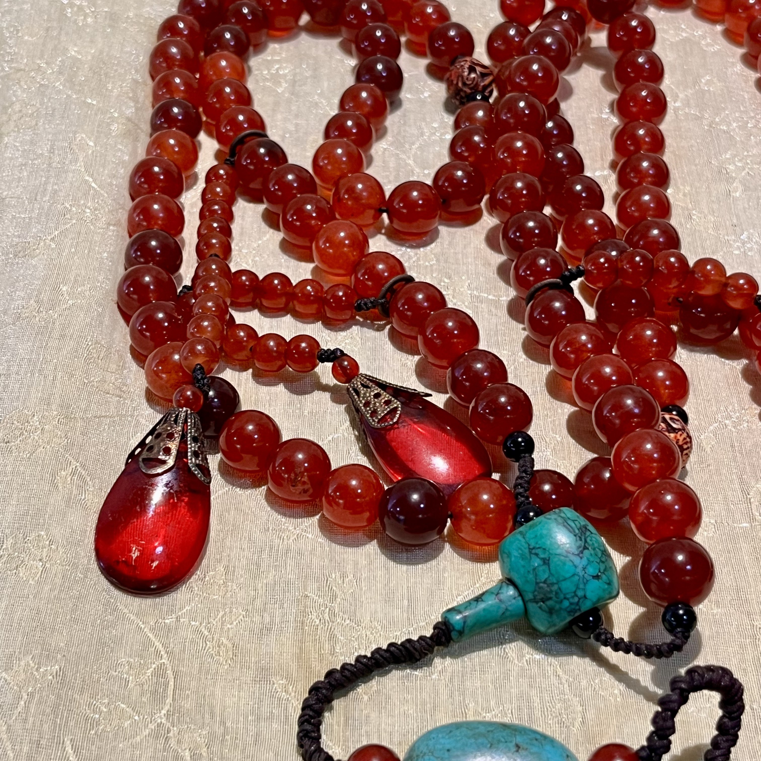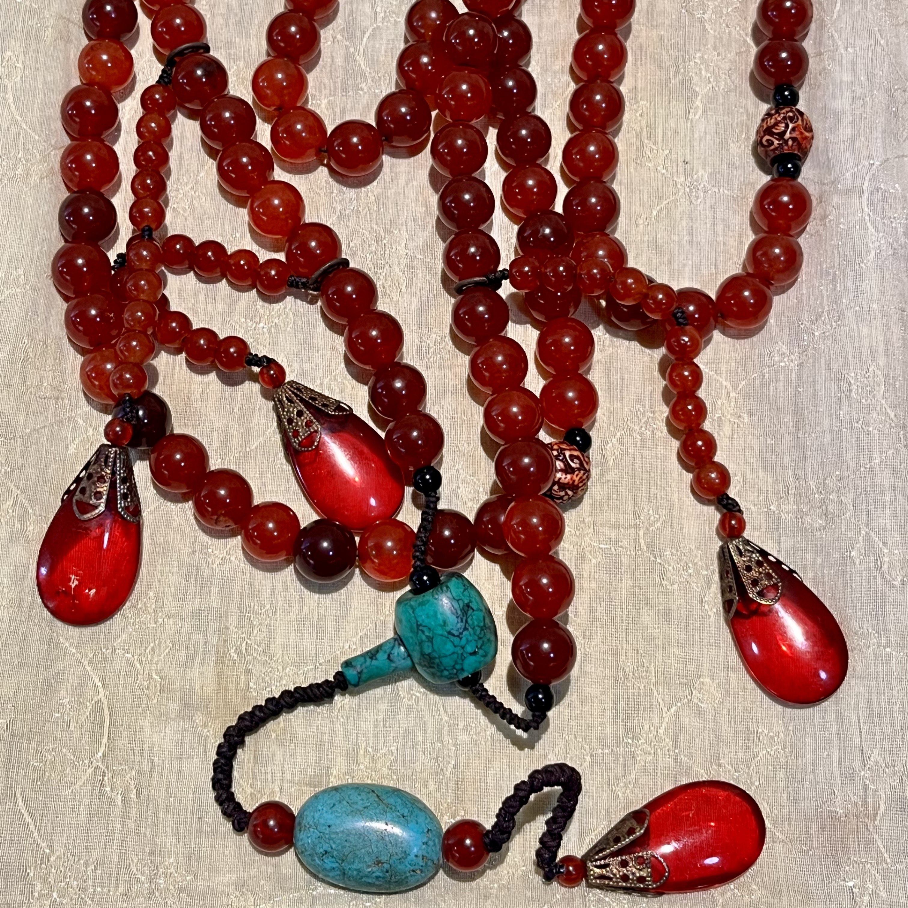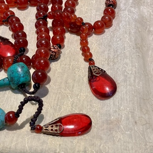 女款 南红绿松石朝珠国风天然饰品圆珠古玩文玩多用手串新中式 男款