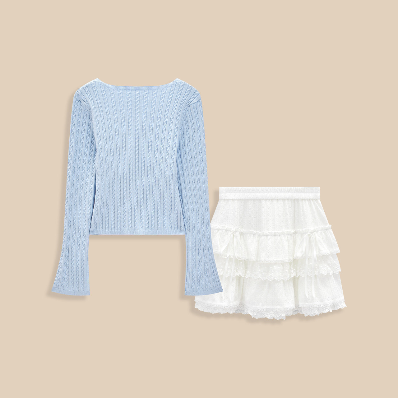 法式 新款 小清新纯欲少女风上下套裙 爱依服一整套穿搭2025秋季 IEF