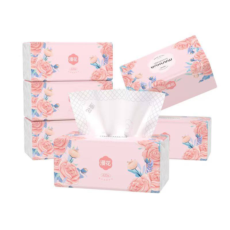漫花纸巾加大码 四边压花抽纸家用餐巾纸大包清洁卫生纸可湿水纸巾
