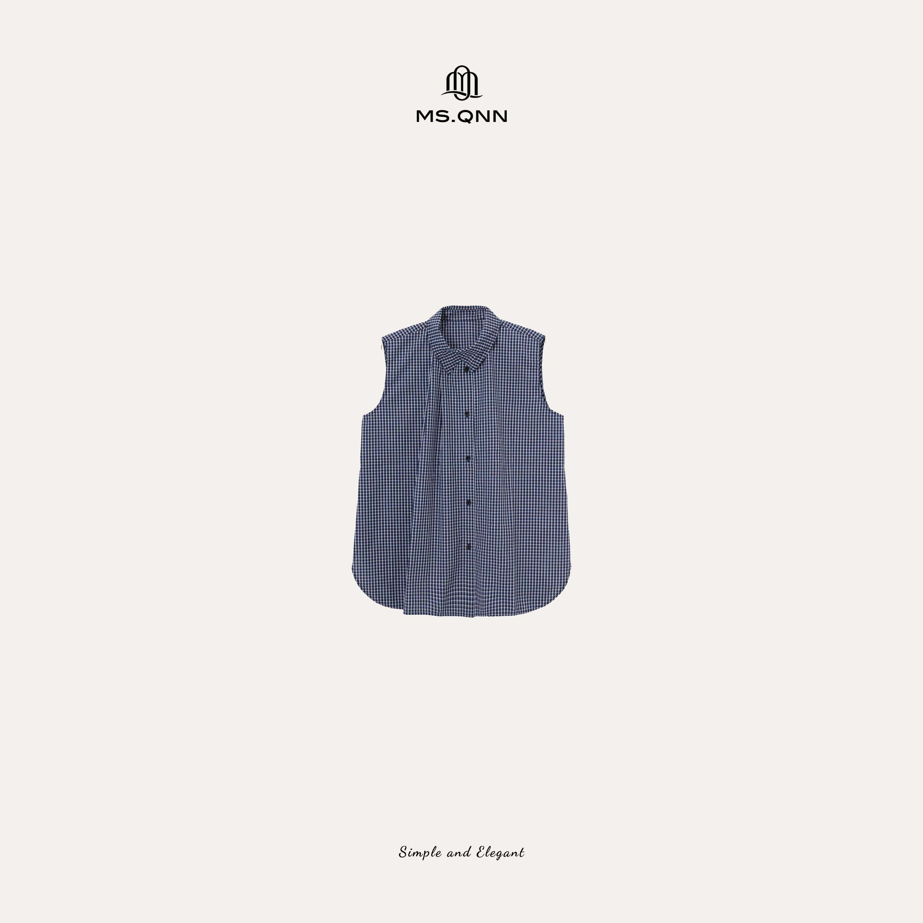 52C860 私服系列纯棉撞色格纹廓形休闲马夹 Q姐 叠穿美学