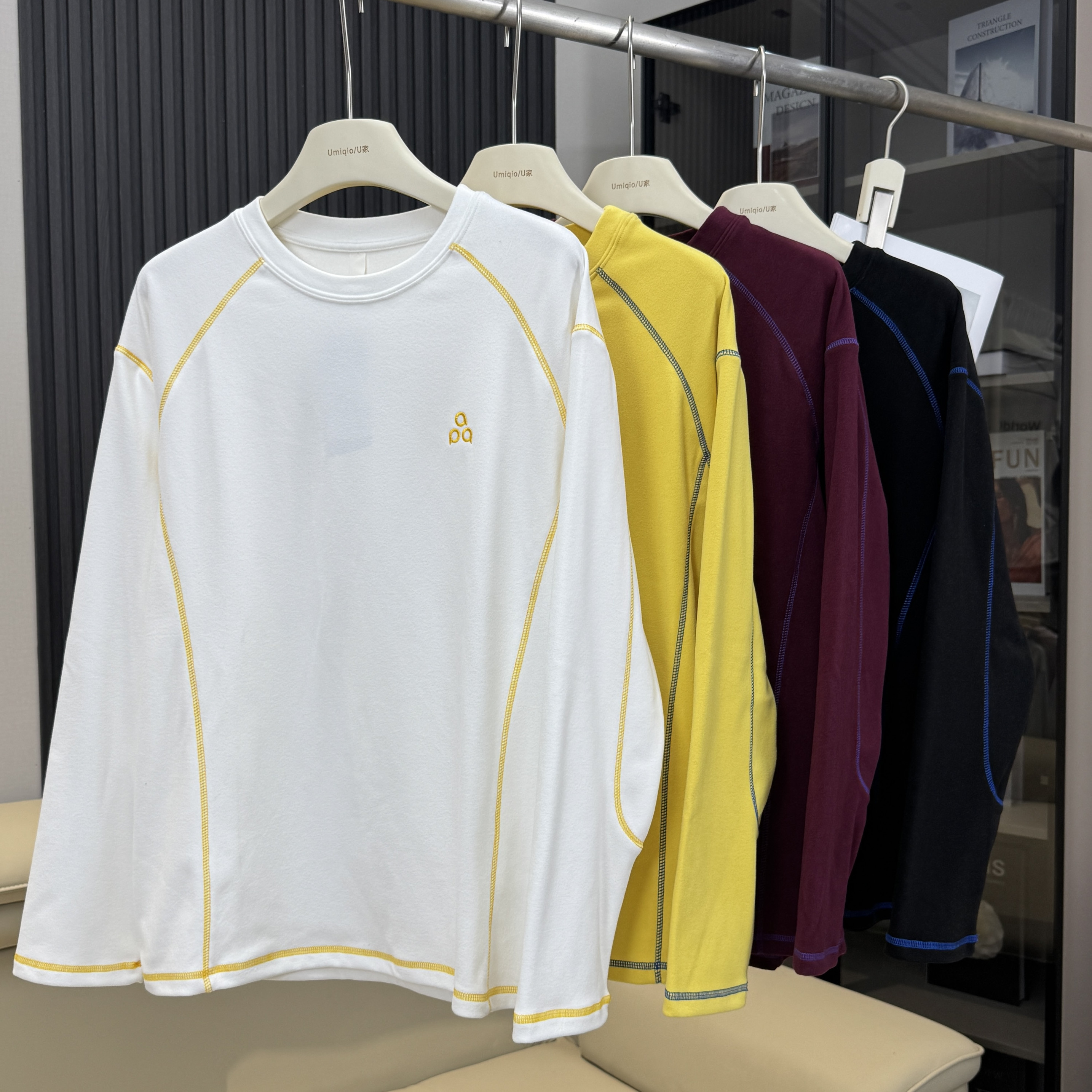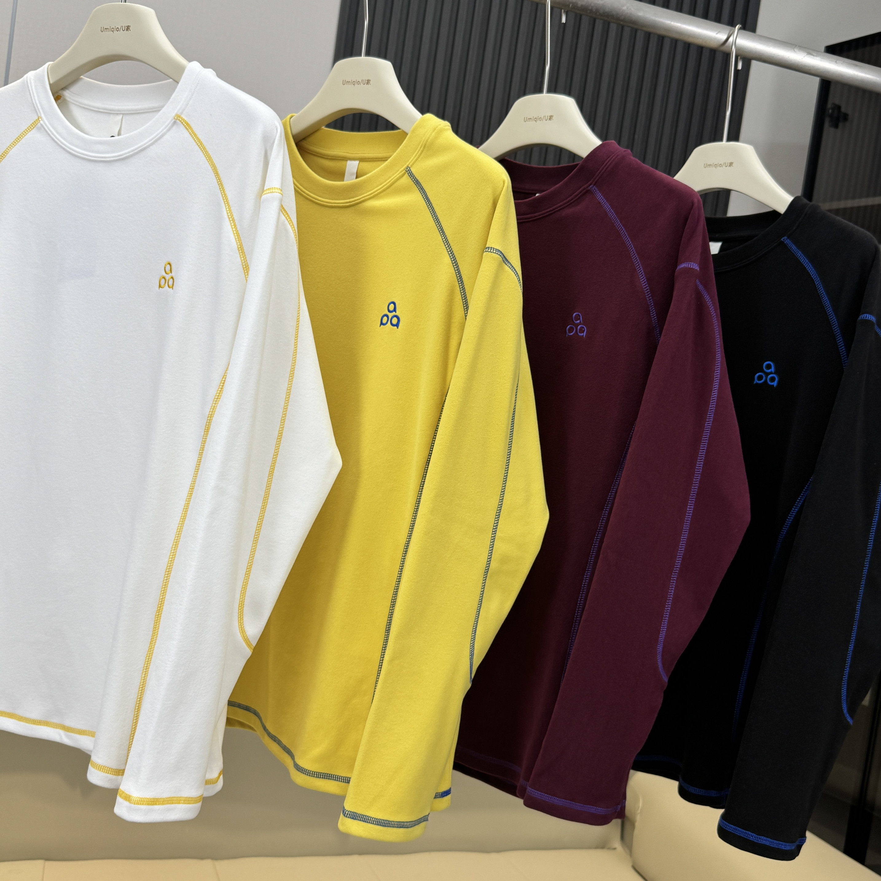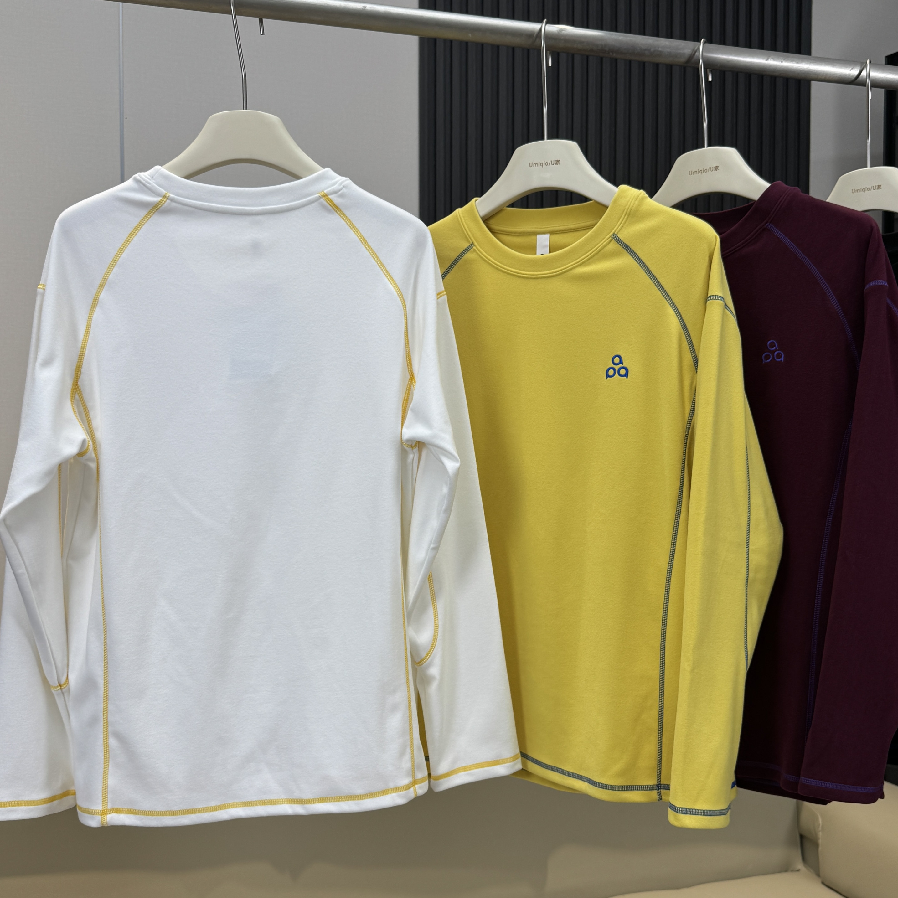 T恤 德绒保暖长袖 棵米ai蕉家 户外山系情侣明线抓绒衣圆领打底衫
