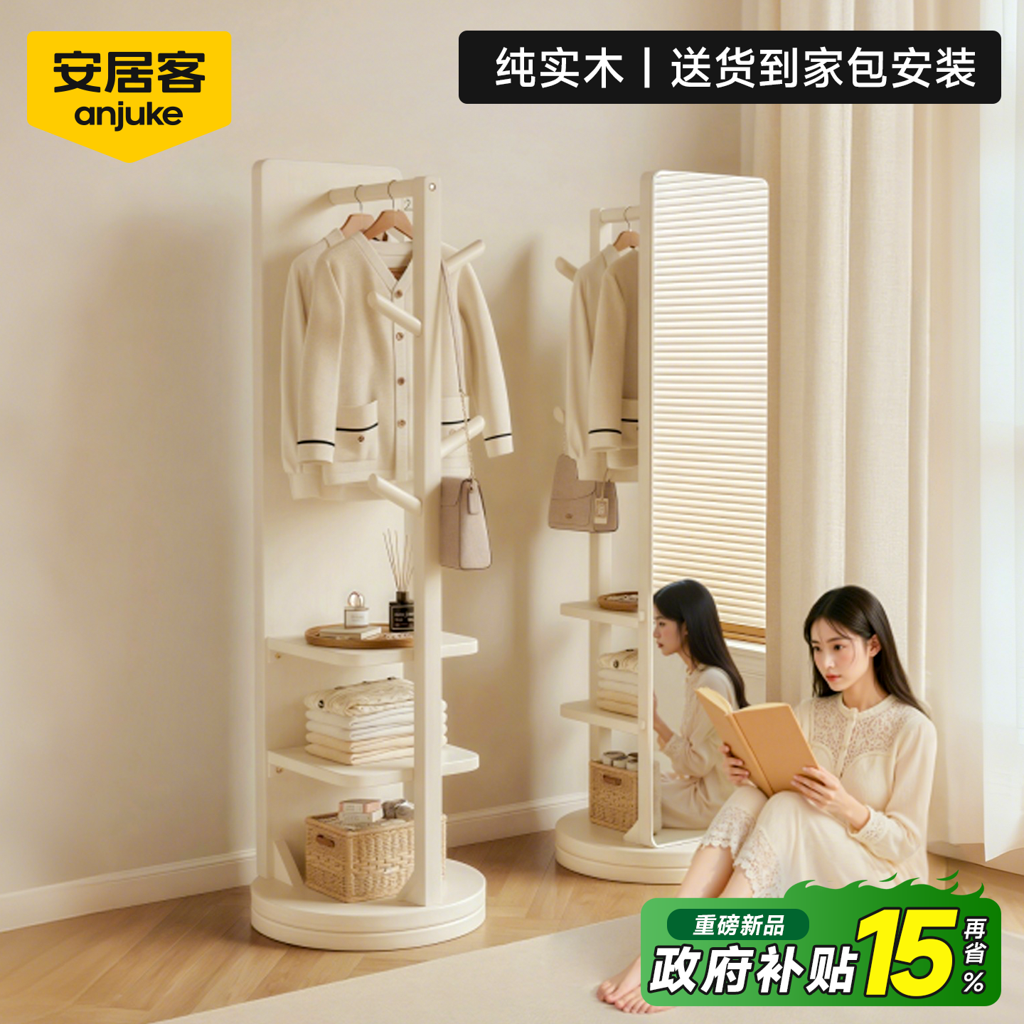 全身镜落地镜家用衣帽架一体穿衣镜可旋转移动女生卧室大试衣镜子