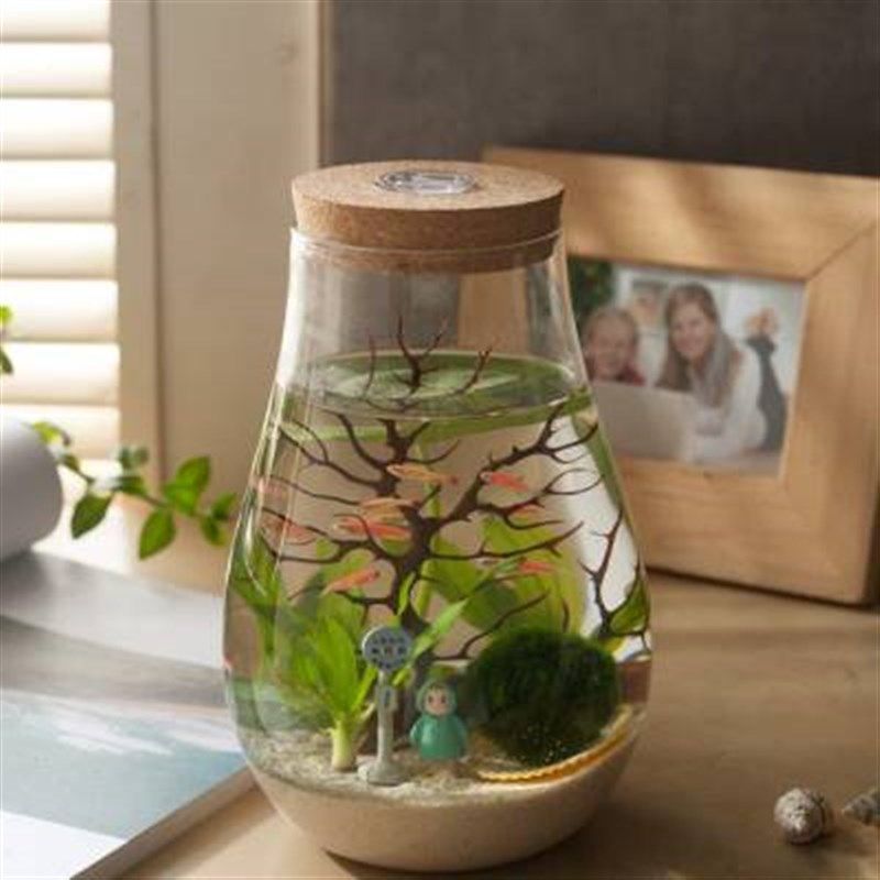 生态瓶微景观鱼造景斗鱼玻璃缸水族办公桌面客厅创意观赏免换水