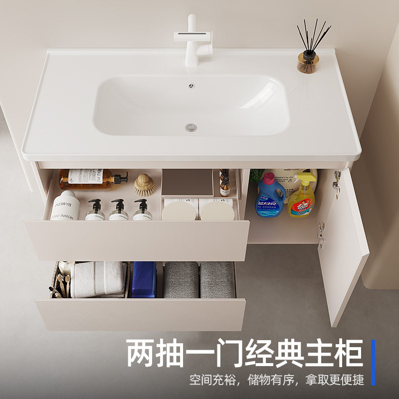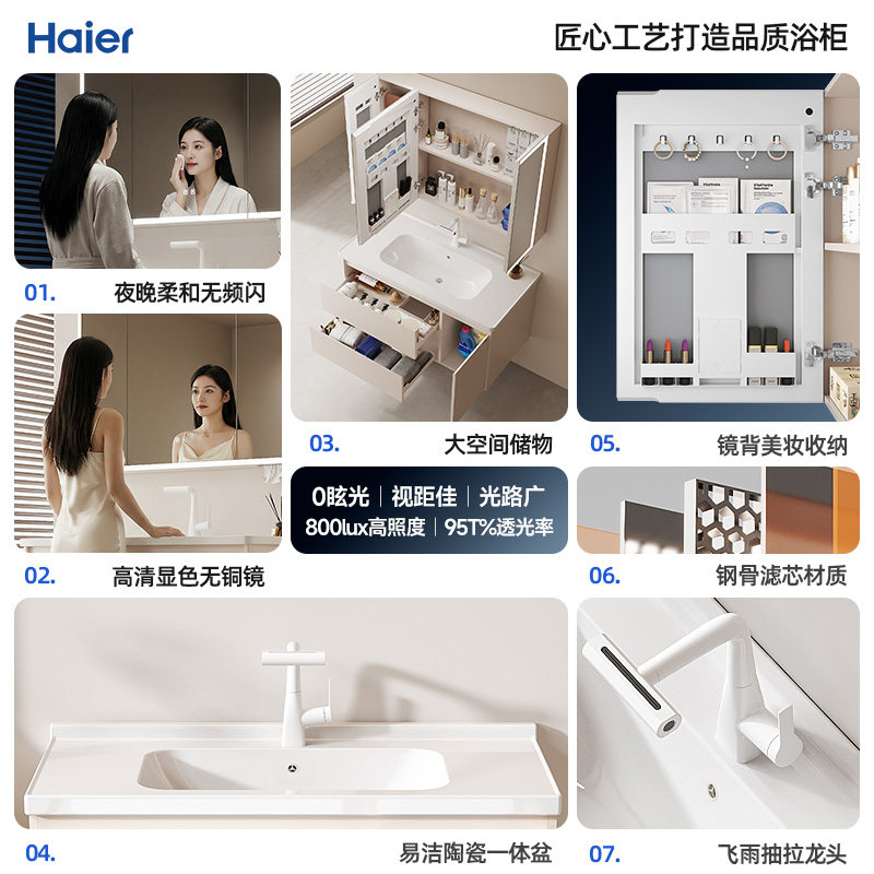 海尔蜂窝太空铝合金肤感浴室柜组合陶瓷一体盆美妆镜柜组合