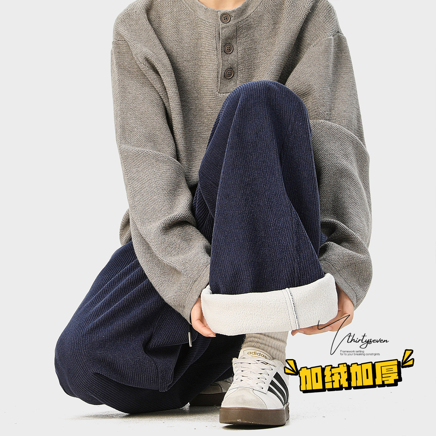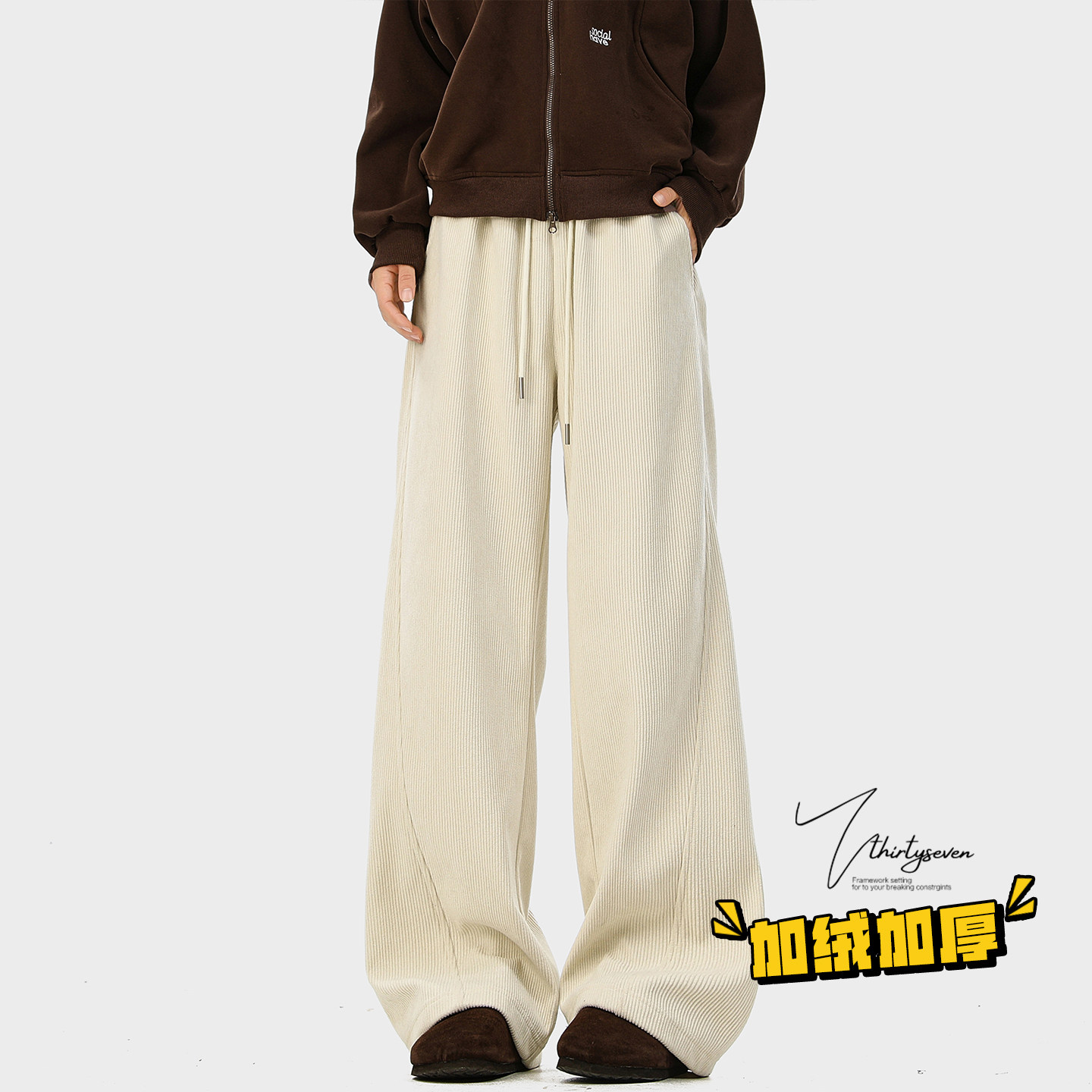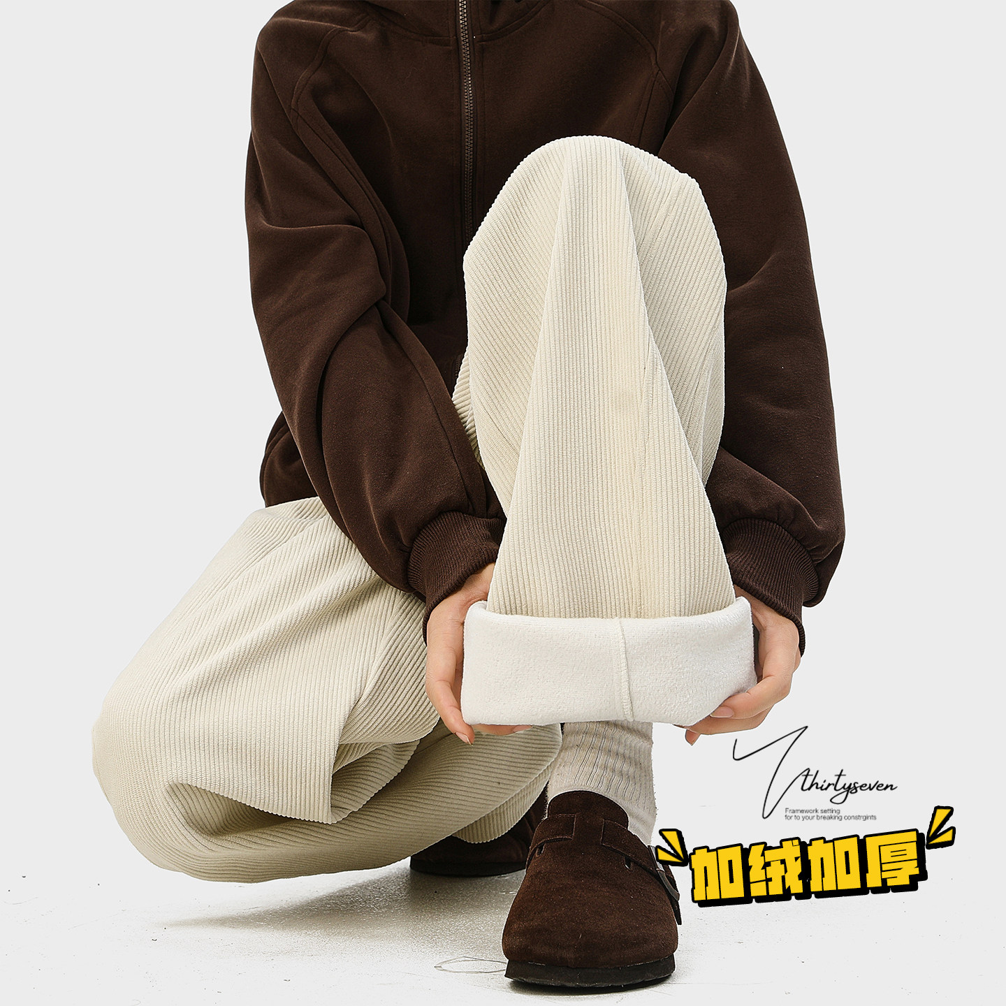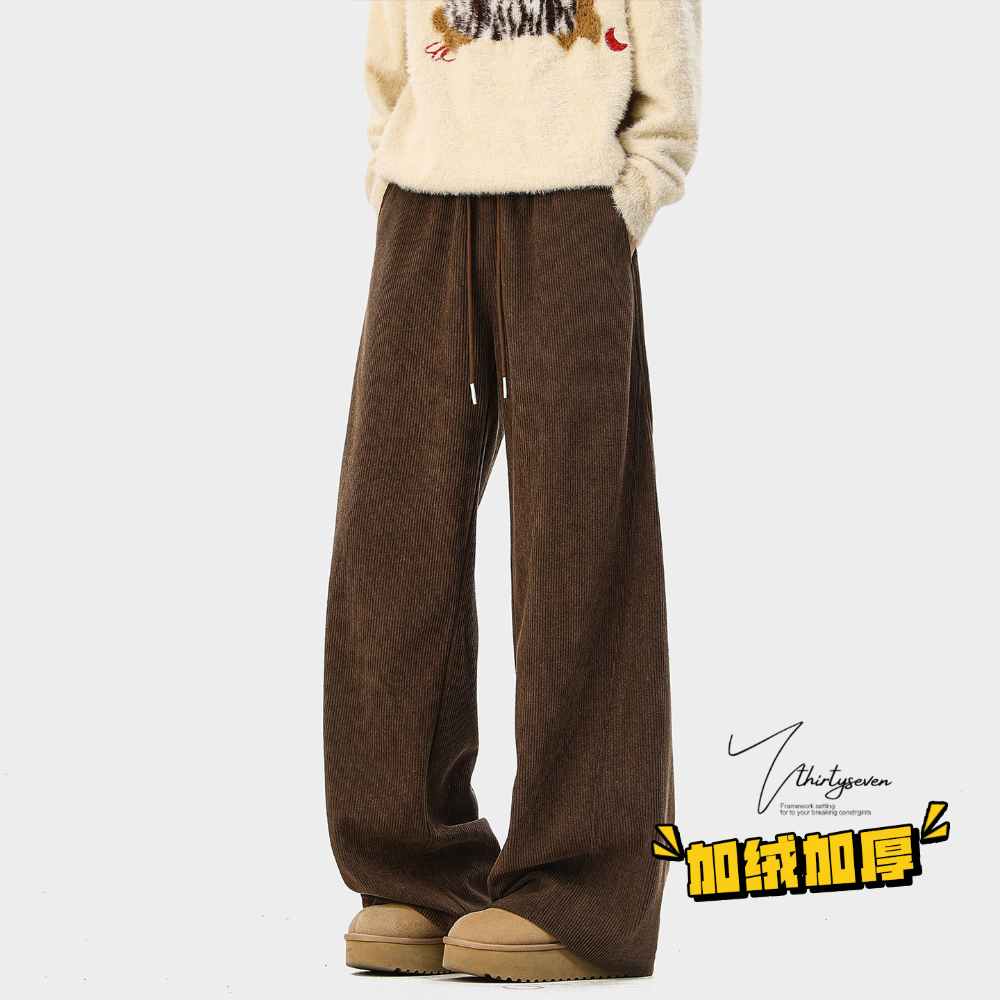 V37美拉德复古咖色保暖灯芯绒裤 子男秋松弛感加绒加厚宽松休闲裤