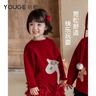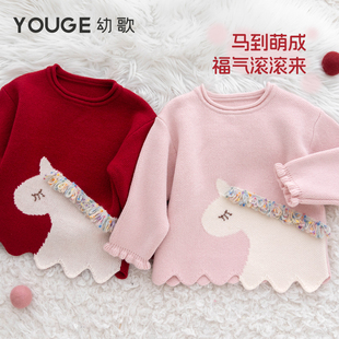 小马提花新年年服宝宝羊毛混纺软糯毛衣 新款 YOUGE幼歌 婴幼儿冬季