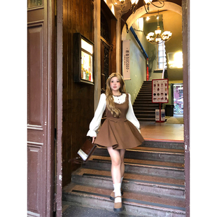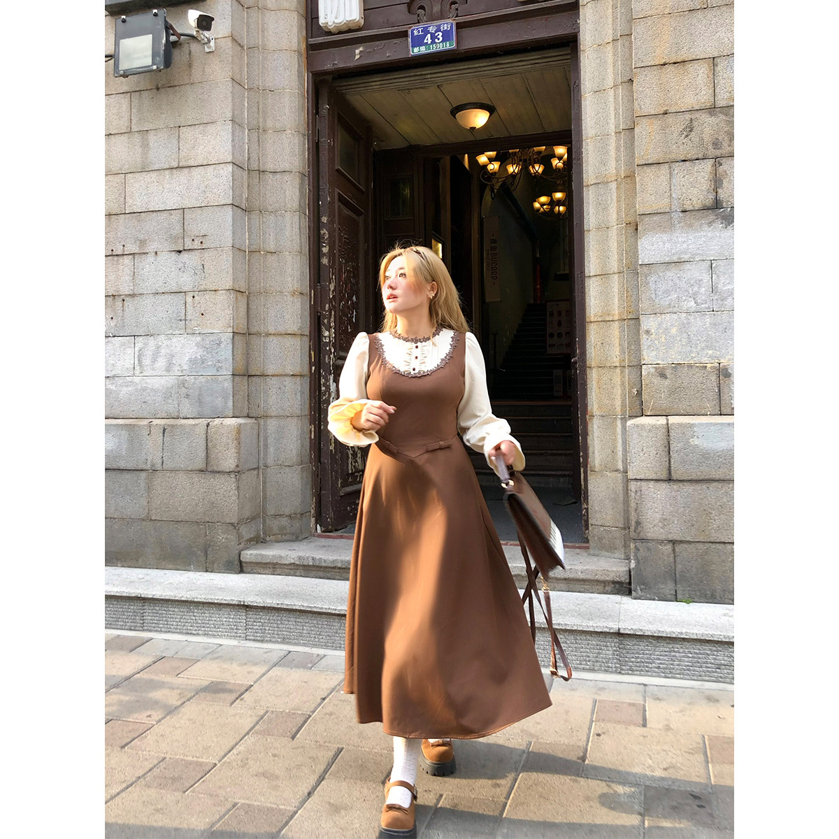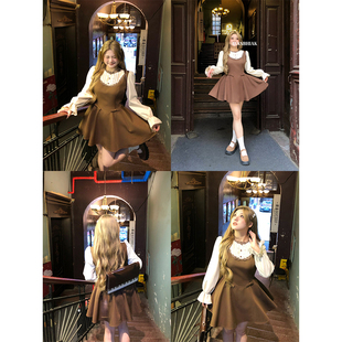 收腰气质长裙 甜美花边拼接假两件连衣裙女微胖大码 安妮不火 法式