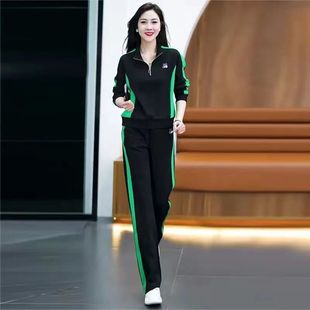 女春秋季 卫衣阔腿裤 新款 洋气显瘦立领长袖 两件套 时尚 休闲运动套装