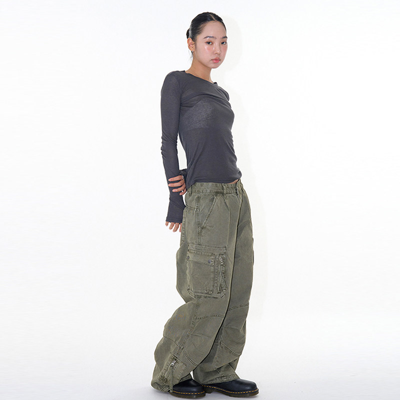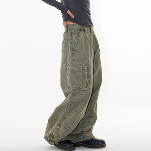 multi cargo pants 韩代Raucohouse 裤 dying 宽松口袋工装 Rare
