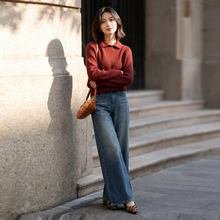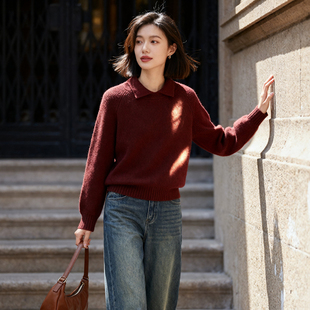 针织打底衫 品牌高级感羊毛衫 女半高领宽松毛衣秋冬加厚羊绒长袖