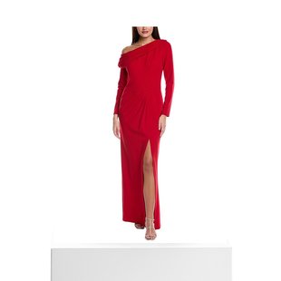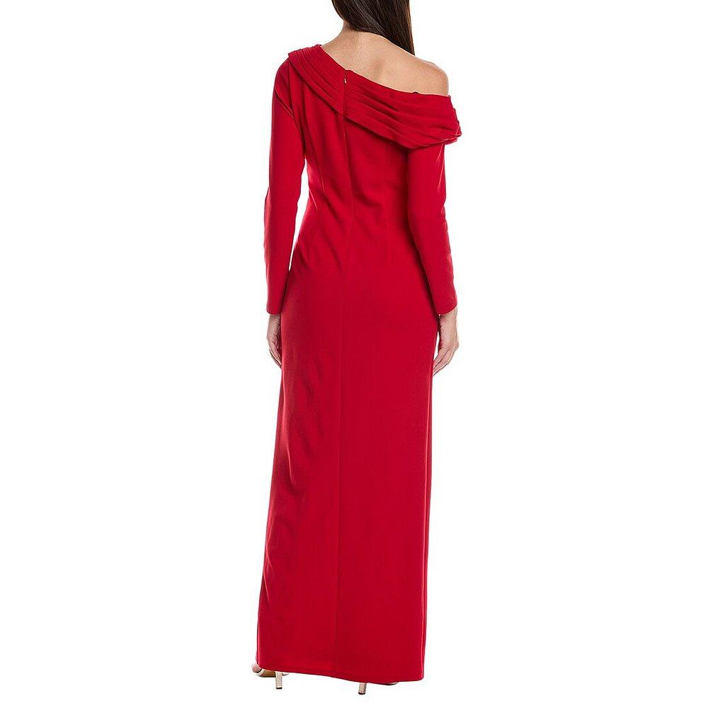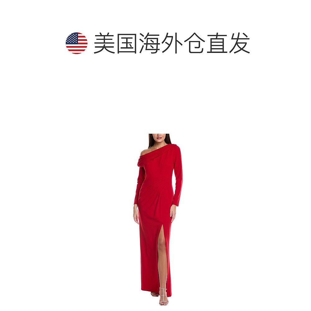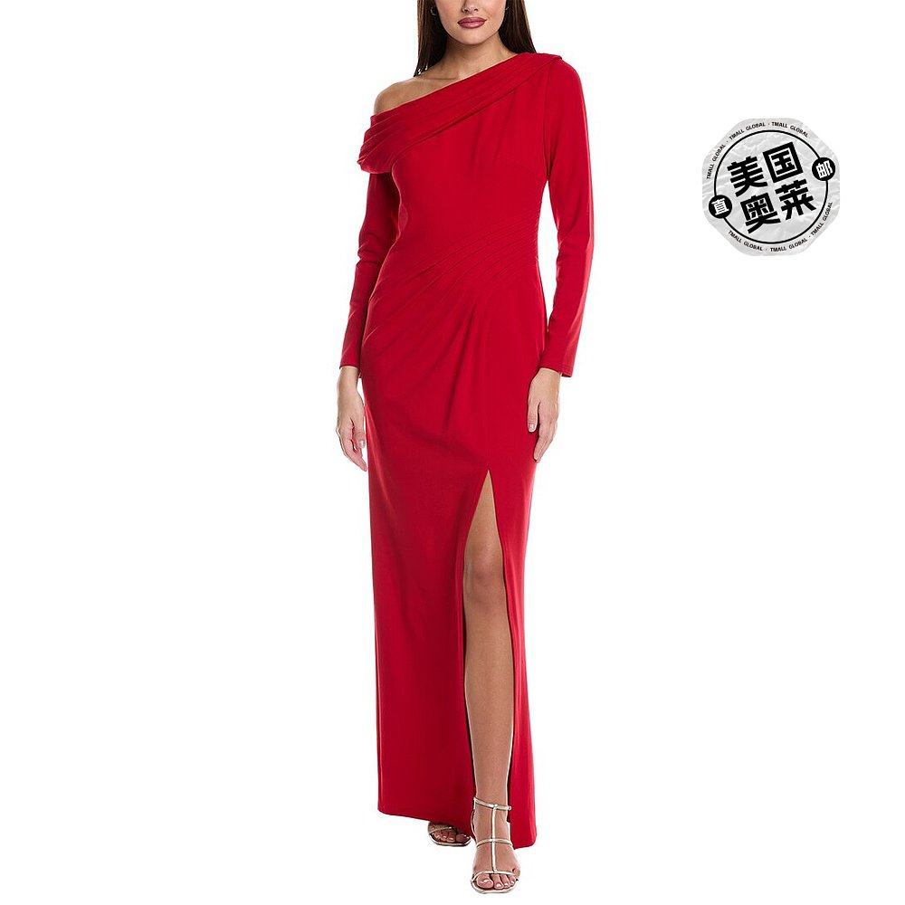 16206港风斜肩荷叶边不规则腰上网纱拼接开叉连衣裙宴会礼服晚装