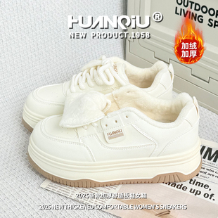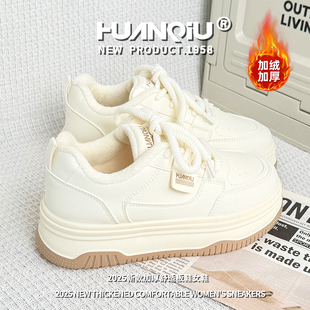 女2025新款 爆款 冬季 可爱 厚底小白鞋 保暖加绒德训棉鞋 勃肯鞋 你