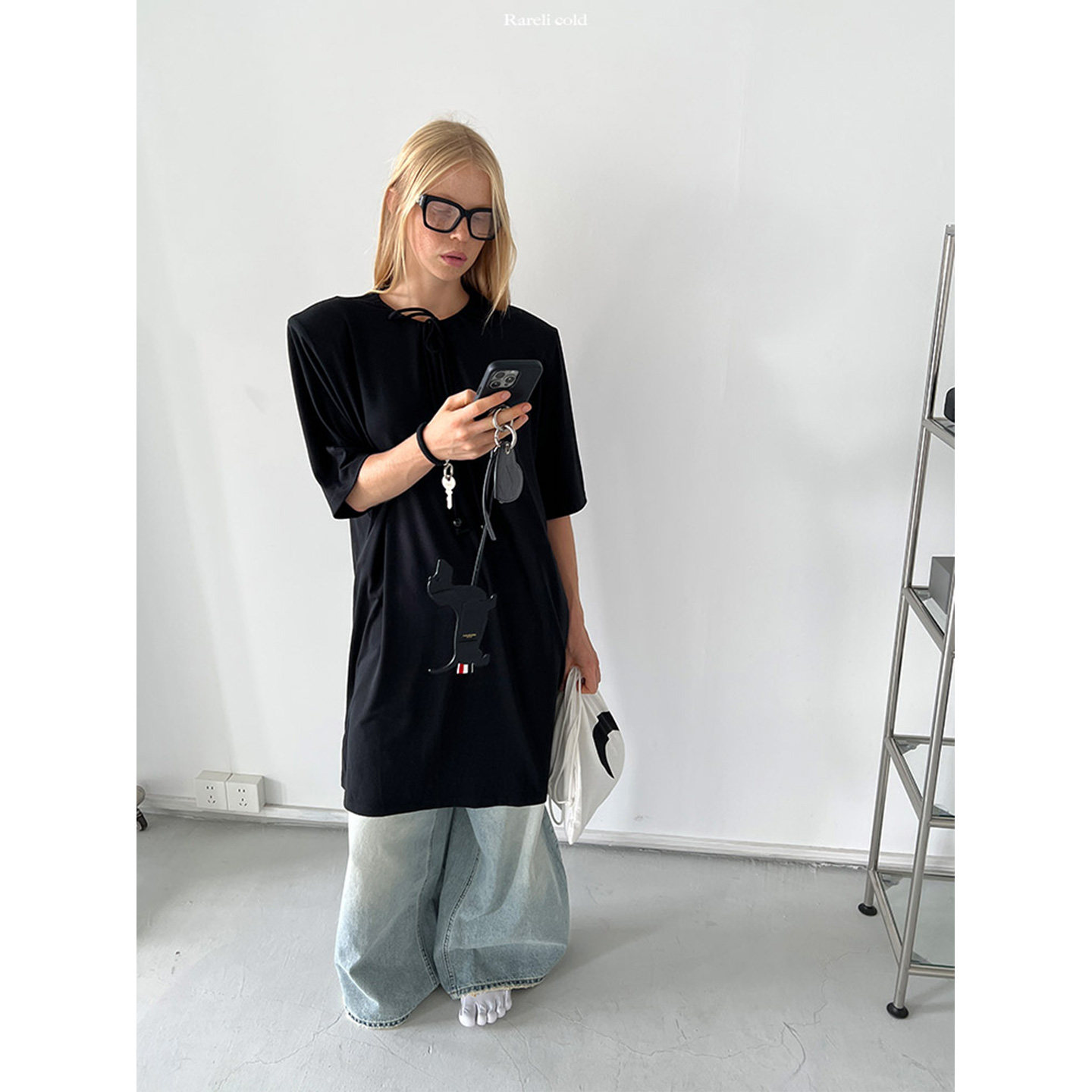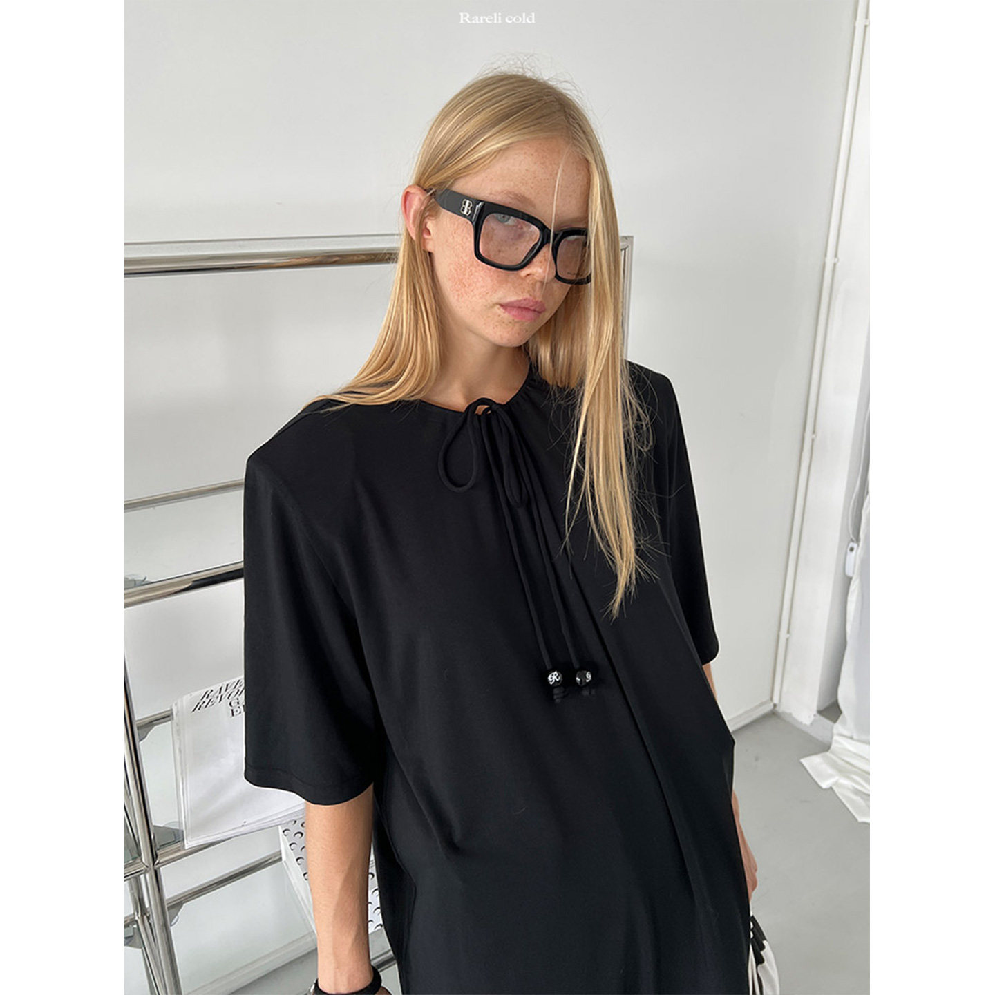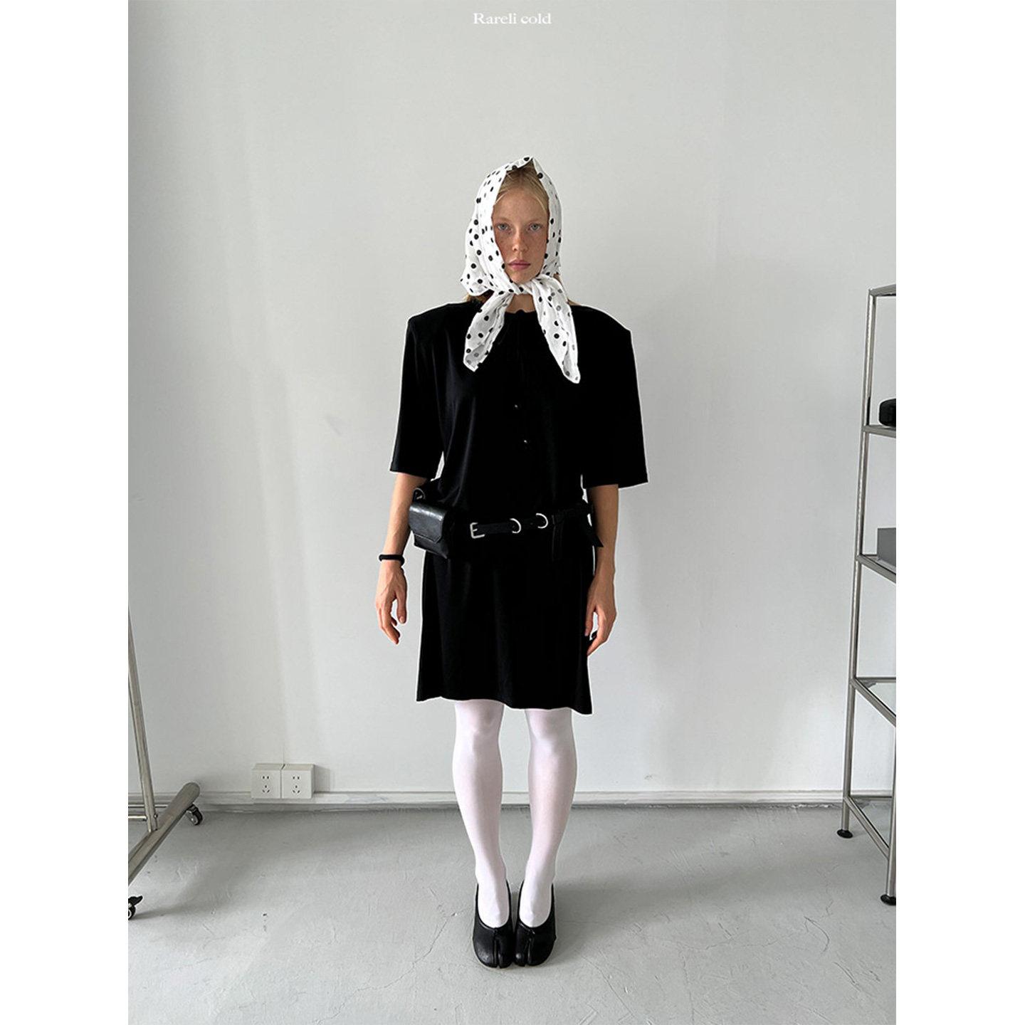 连衣裙 圆珠抽拉领垫肩短袖 Rockrio Rarelicold