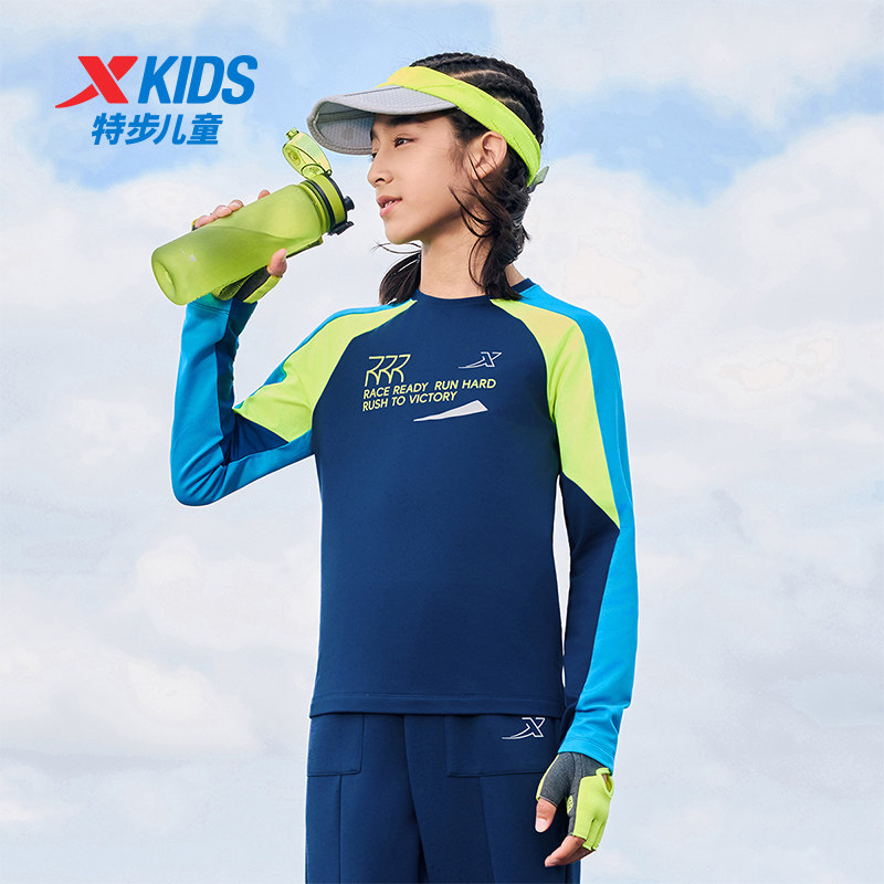针织衫 训练服中大童撞色薄绒长袖 2026年儿童运动男童春装 特步童装